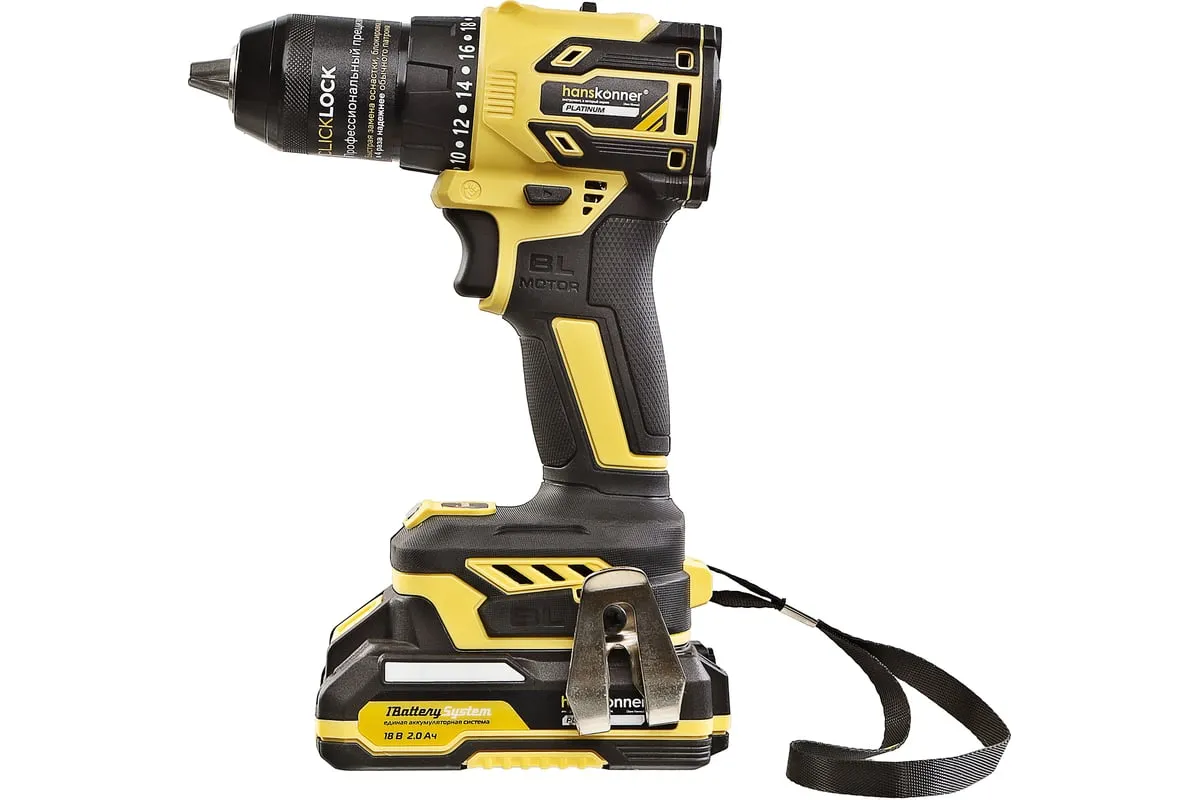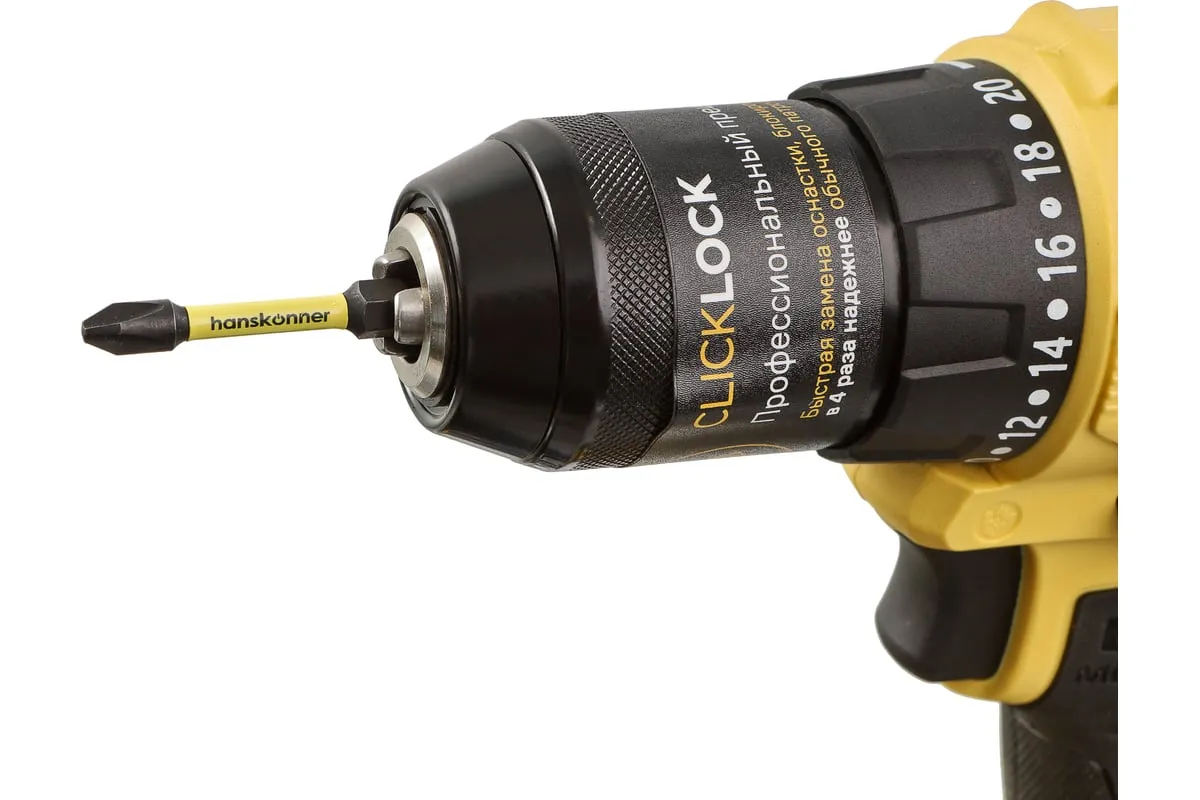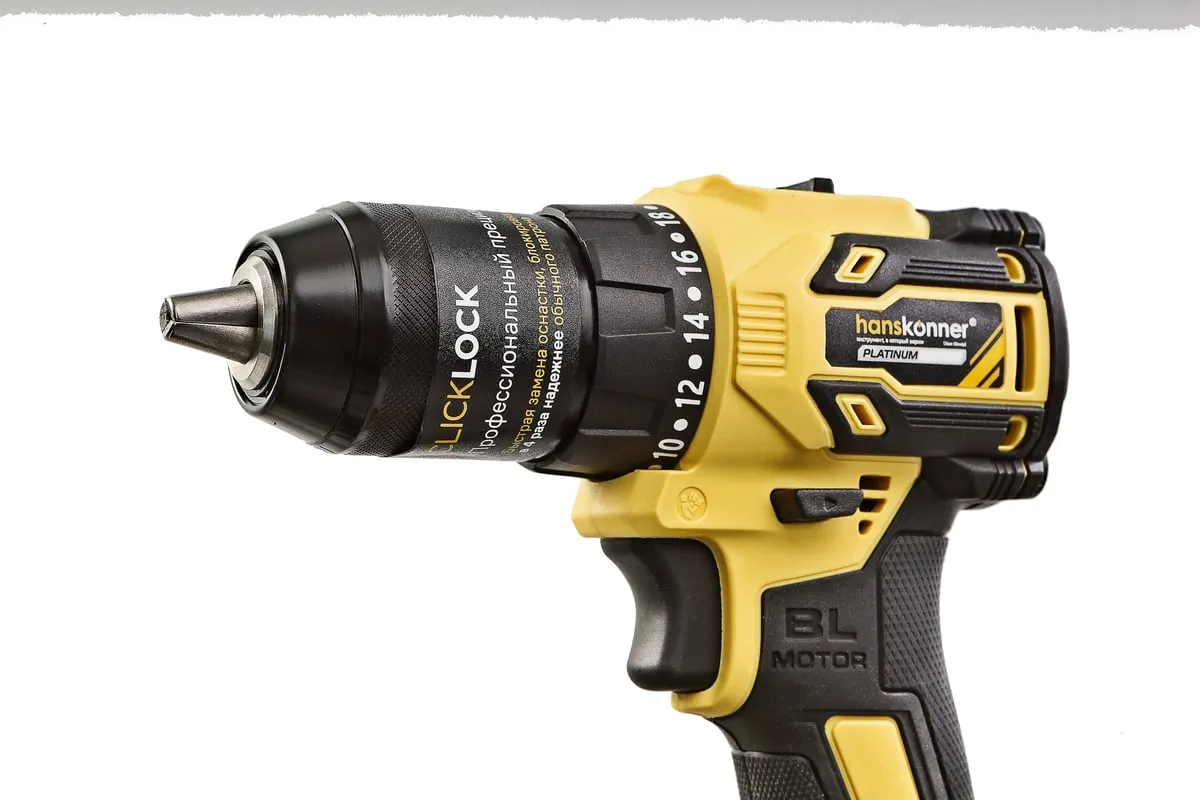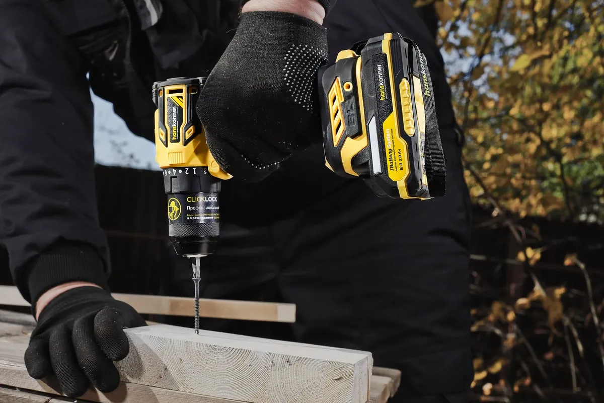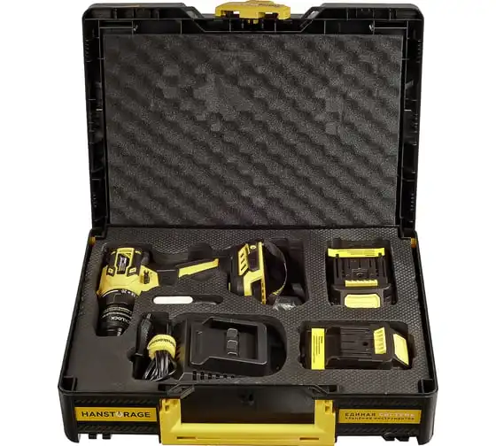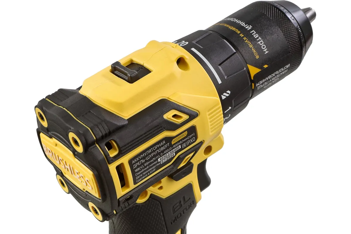 Аккумуляторная дрель-шуруповерт Hanskonner HCD2065BLC подходит для любых работ, в том числе в стесненных условиях и труднодоступных местах без снижения производительности и потери качества работ. Крутящий момент 65 Нм позволяет работать с любым материалом от древесины до металлопроката. Компактный и легкий бесщеточный двигатель имеет наиболее выгодные параметры работы: Усиленный цельнометаллический патрон с диаметром захвата 13 мм расширяет набор применения оснастки для выполнения работ с повышенной нагрузкой. 20 ступеней крутящего момента, режим сверления и режим сверления с ударом позволяют устанавливать любой крепеж без его повреждения и вдавливания в материал. Данная модель является частью системы 1BatterySystem и совместима со всей линейкой аккумуляторного инструмента. Два Li-Ion аккумулятора 2.0 Ач с собственной системой защиты от перегрузки, перегрева и глубокого разряда обеспечат полную непрерывность в работе. Функция быстрой зарядки зарядного устройства полностью восстановит работоспособность аккумулятора 2.0 Ач всего за 50 минут. Аккумулятор с выходом USB позволит подзарядить ваш гаджет.