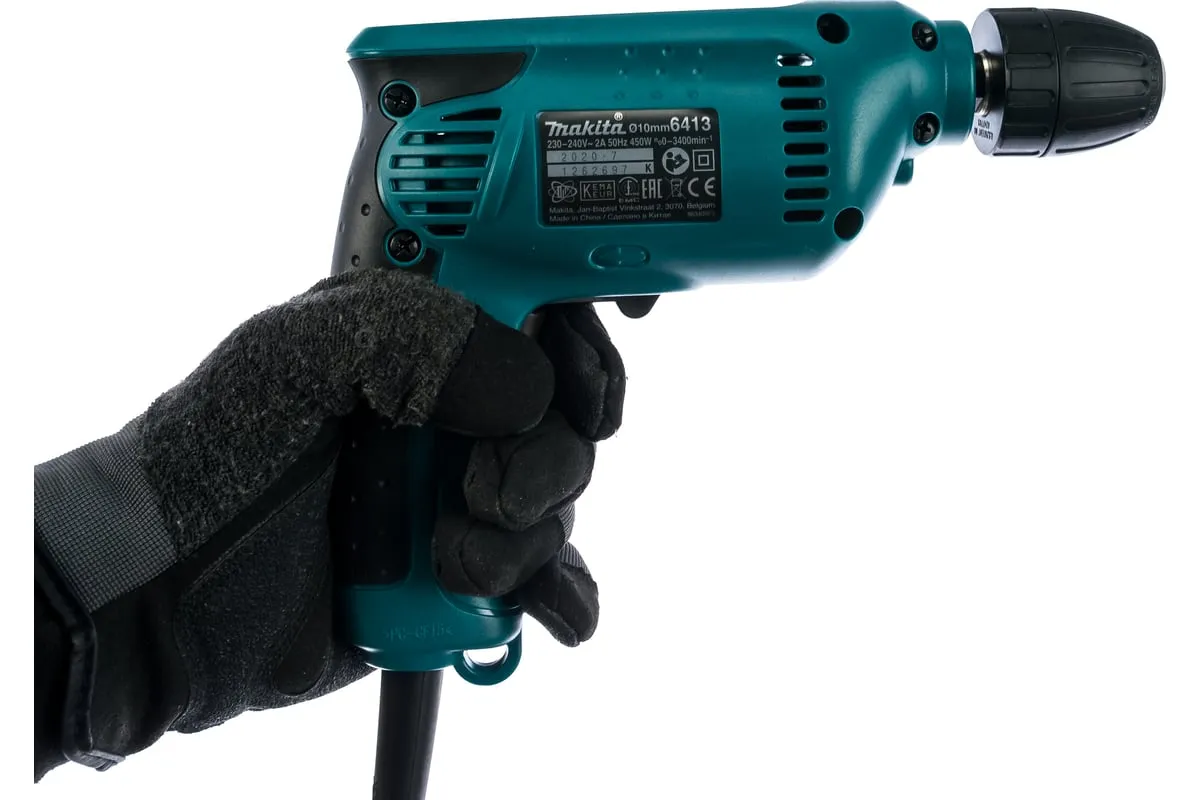 Дрель Makita 6413 предназначена для сверления отверстий, а с соответствующей оснасткой - для работы с крепежными элементами. Инструмент оснащен двигателем мощностью 450 Вт.
