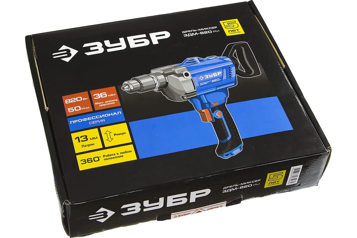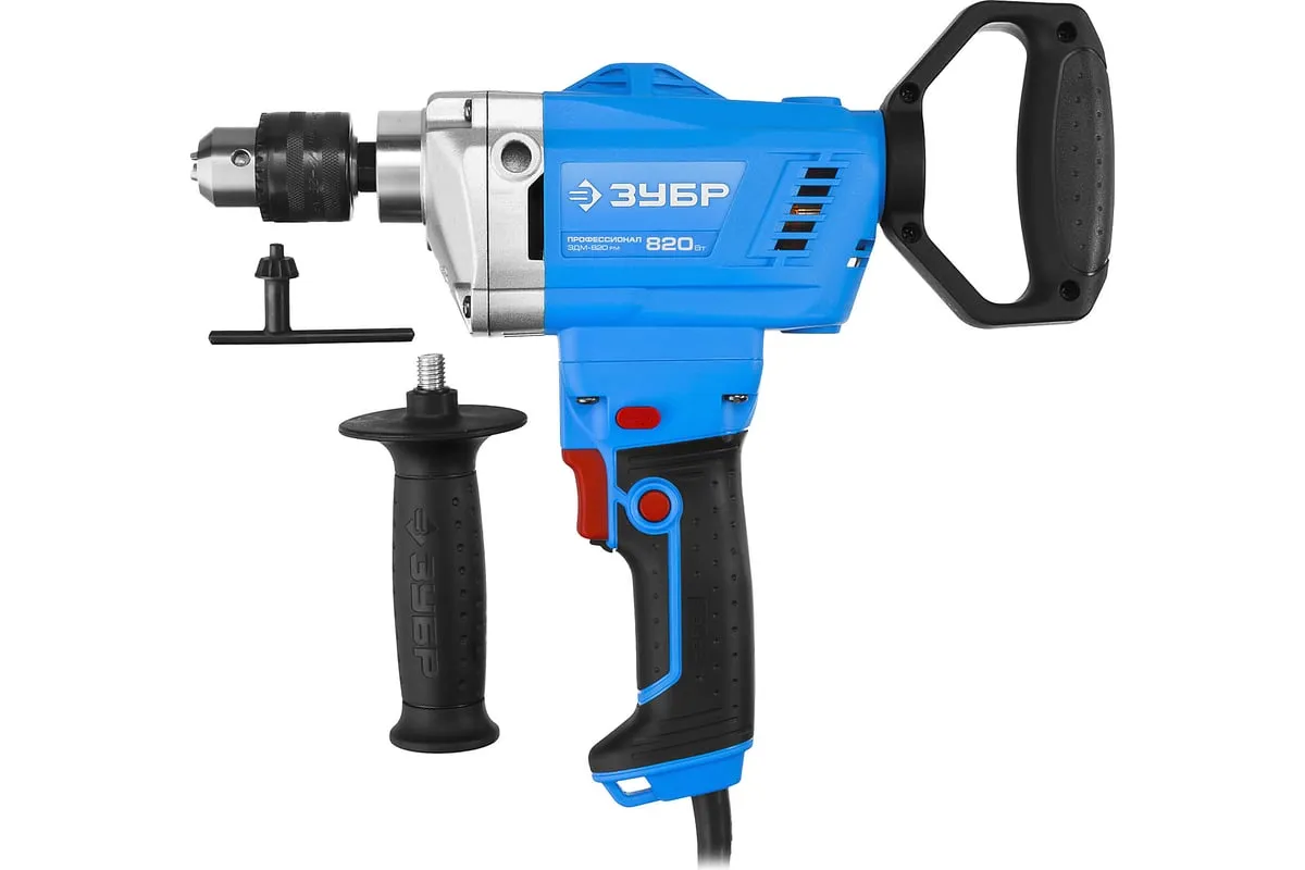Дрель-миксер Зубр ПРОФЕССИОНАЛ ЗДМ-820 РМ - профессиональный инструмент с усовершенствованной конструкцией. Он используется для сверления отверстий в дереве, стали, кирпиче, а также для размешивания красок, бетона и различных растворов. Ключевой патрон способствует надежной фиксации оснастки. Дополнительная вращающаяся рукоятка обеспечивает комфортную работу.