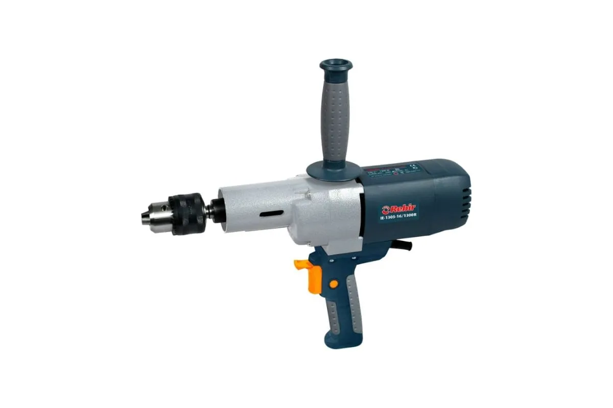 Дрель Rebir IE 1305-16/1300 R 07.001.00013 применяется для сверления отверстий в различных материалах. При наличии перемешивающей насадки ее можно использовать в качестве миксера. Инструмент оснащен трехступенчатым редуктором с алюминиевым корпусом, благодаря чему достигается долгий срок службы. Для работы в непрерывном режиме предусмотрена фиксация кнопки "Пуск".