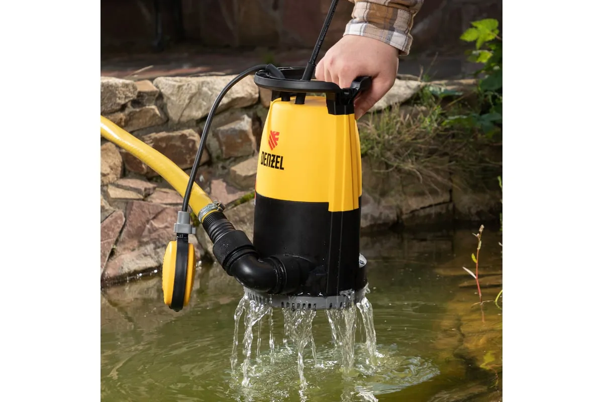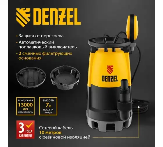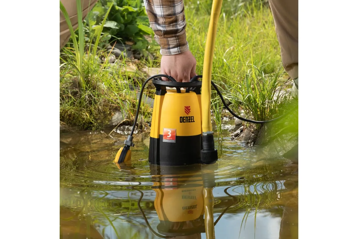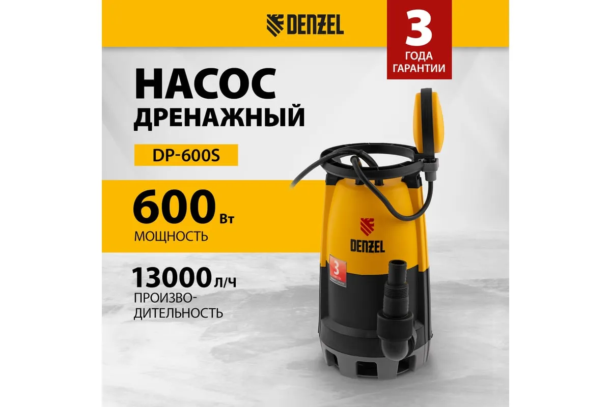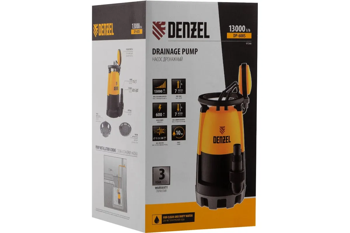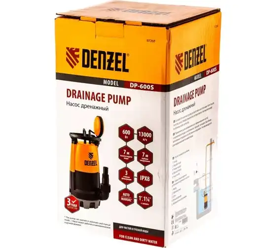 Дренажный насос для чистой и грязной воды DENZEL DP-600S 97268 используется для откачки жидкости из затопленных помещений, а также для организации полива и подачи воды из колодцев и открытых водоемов.