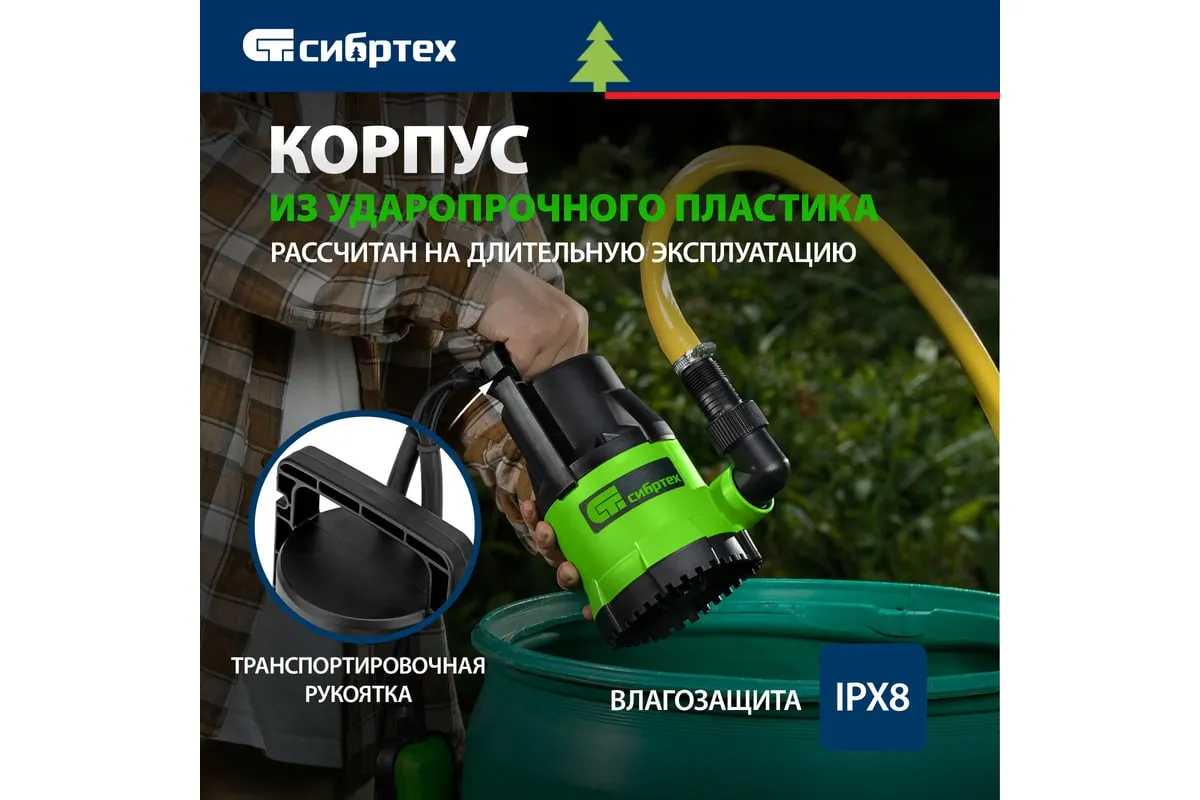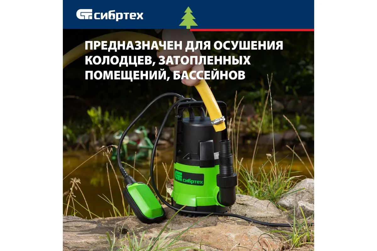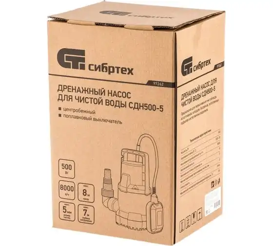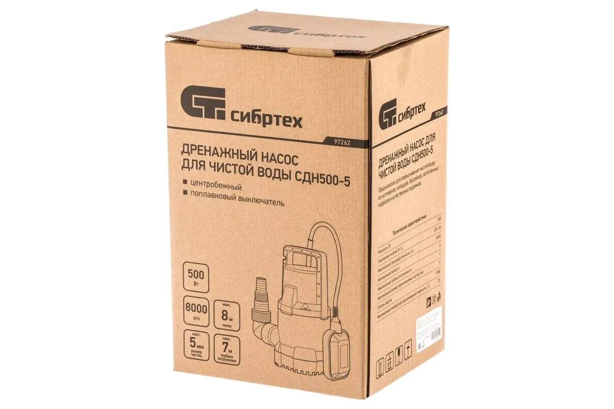 Дренажный насос для чистой воды СИБРТЕХ СДН500-5 97262 используется для откачки воды из помещений, подвергаемых затоплению грунтовыми водами, при проведении строительных работ, для перекачивания жидких бытовых отходов. Автоматическая блокировка.Поплавковый механизм включает насос при высоком уровне воды и отключает при низком. Имеет пластиковый корпус, поэтомуне подвержен коррозии.