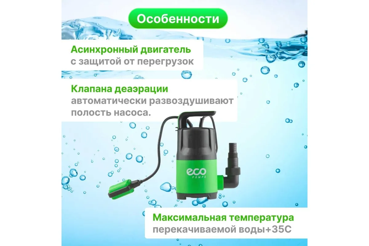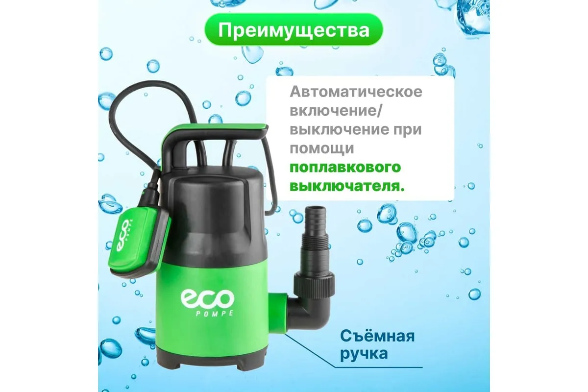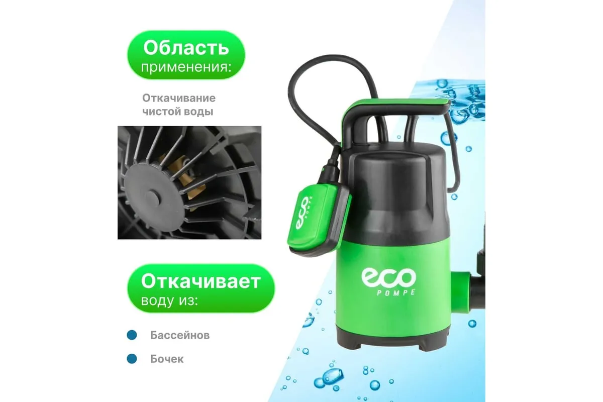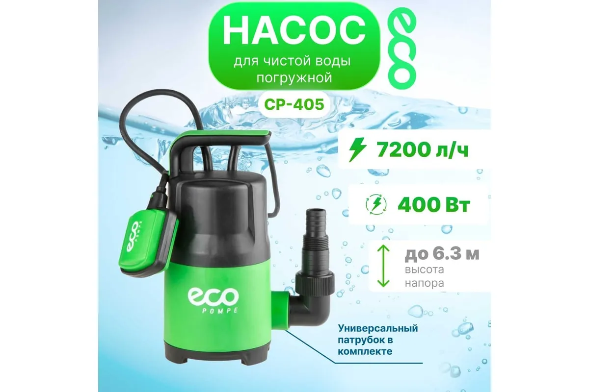 Дренажный насос ECO CP-405 применяется для перекачивания чистой воды из колодцев, резервуаров и бассейноч.