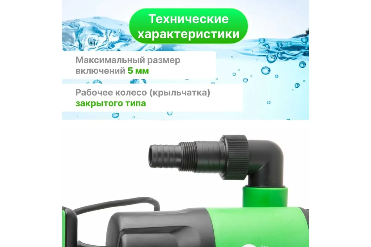 Для защиты от работы вхолостую предусмотрен внешний поплавковый механизм, который отключает и включает насос в зависимости от уровня воды.