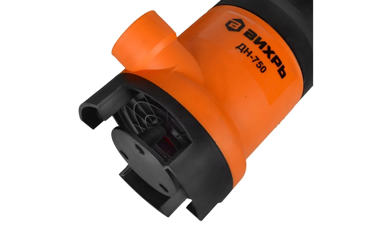 Дренажный насос оснащен поплавковым выключателем для предотвращения работы «всухую». Длина кабеля поплавка настраивается в зависимости от дебета водоема, чтобы двигатель отключался при достижении минимального или максимального уровня воды. В модели Вихрь ДН-750 нижний забор воды, это необходимо учесть при установке уровня выключения насоса. Количество срабатываний не должно превышать 20 в час.