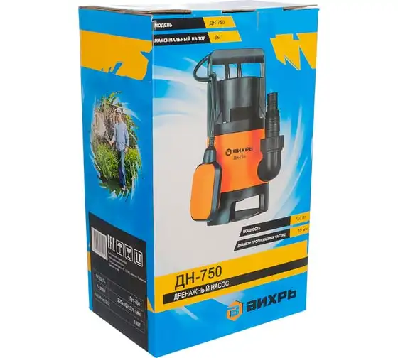 Вихрь ДН-750 — это дренажный насос мощностью 750 Вт для перекачки загрязненной воды из естественных водоемов, оросительных каналов и дренажных колодцев, затопленных жилых помещений и подвалов. Допустимый размер пропускаемых механических частиц - до 35 мм. Использование в воде с более крупными включениями изнашивает рабочие части насоса и может привести к заклиниванию рабочего колеса.