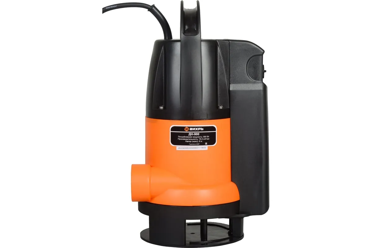 Модель Вихрь ДН-900 – дренажный насос, который обладает мощностью 900 Вт, обеспечивает подачу воды до 258 л/мин и напор до 8 м. В нём установлен однофазный двигатель, отличающийся надёжностью и большим рабочим ресурсом. Модель Вихрь ДН-900 предназначена для откачивания грязной воды из подвалов, забора воды для технических нужд из открытых водоёмов, водоотведения из сливных ям. Допустимый диаметр пропускаемых частиц составляет 35 мм. Диаметр выходного отверстия 1.5".