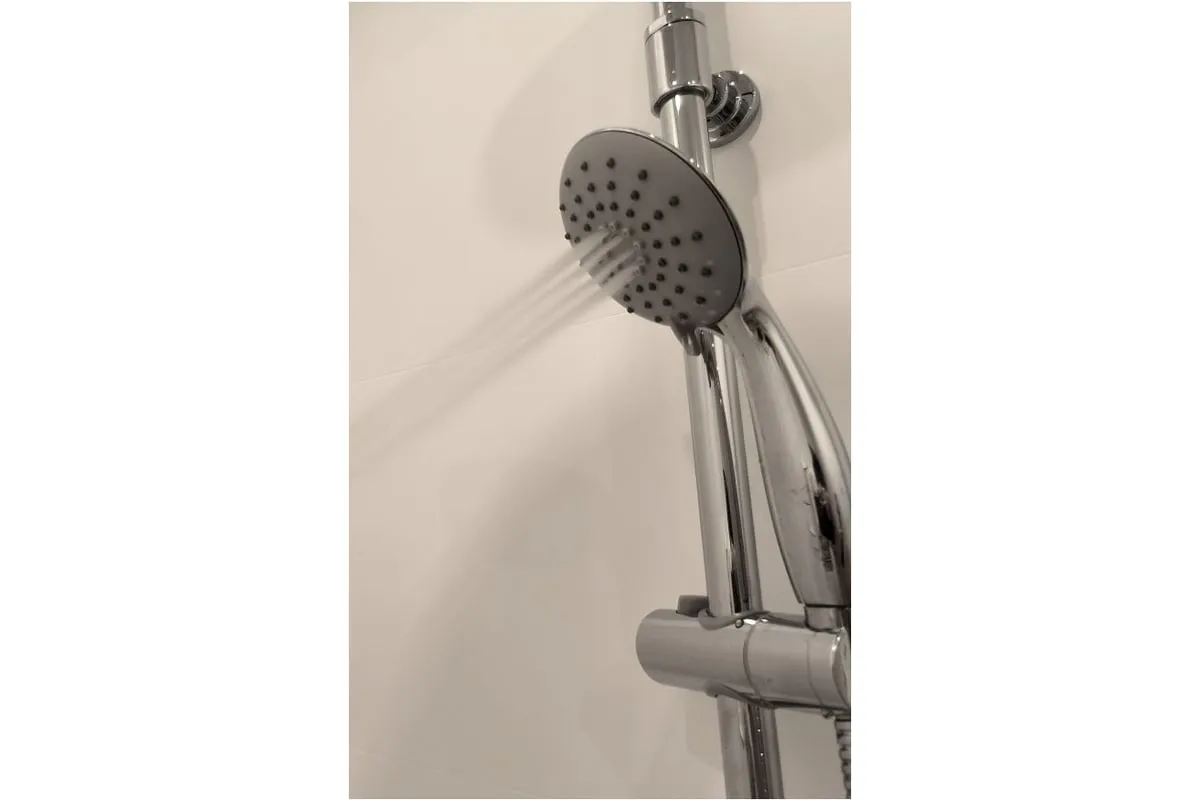 Душевая стойка сочетает в себе эстетику современного стиля, удобство в использовании, надежность и превосходное качество. Функциональные особенности данной душевой системы позволят с лёгкостью переключаться между ручным и верхним душем. А равномерное распределение потоков воды по форсункам лейки позволит с лёгкостью и комфортом принимать душ каждый день. Достоинством также является хромированное покрытие всей душевой системы, которое способствует быстрому скатыванию воды с поверхности, что очень эффективно в борьбе с известковым налетом.