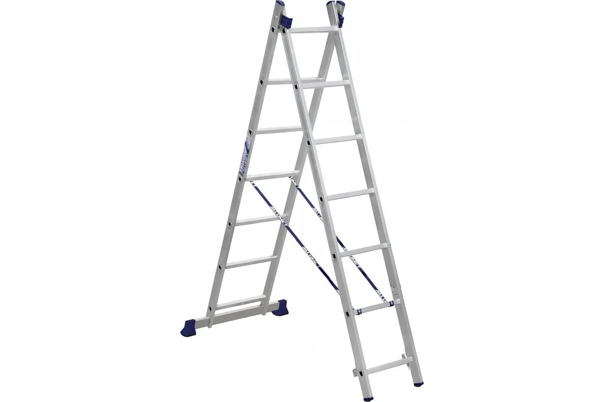 Лестница алюминиевая двухсекционная универсальная – замечательный выбор для проведения работ на высоте.