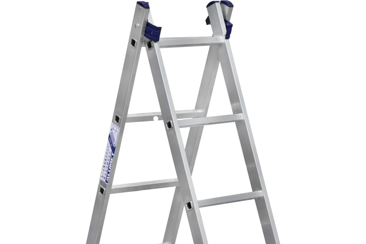 Ее конструкция позволяет изменять конфигурацию в зависимости от требований и задач. Такая модель может использоваться как приставная лестница или стремянка, что делает ее чрезвычайно универсальной и удобной в различных ситуациях.