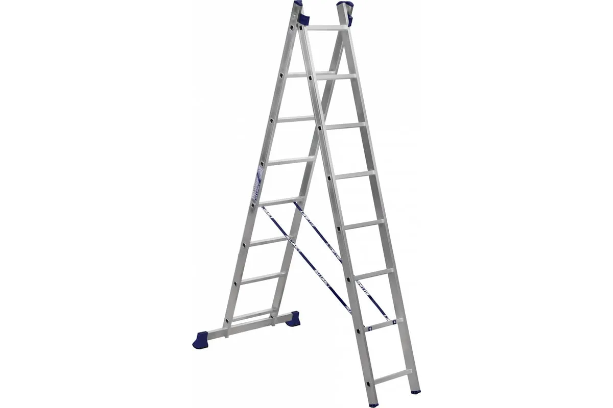 Лестница алюминиевая двухсекционная универсальная – замечательный выбор для проведения работ на высоте.