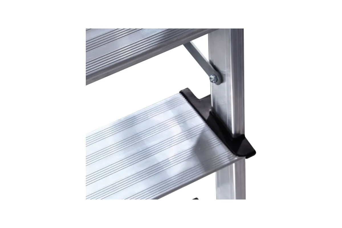 Тетивы и ступени стремянки изготовлены из высокопрочного алюминиевого сплава (ГОСТ 22233-2018), что обеспечивает прочность и долговечность при минимальном весе.