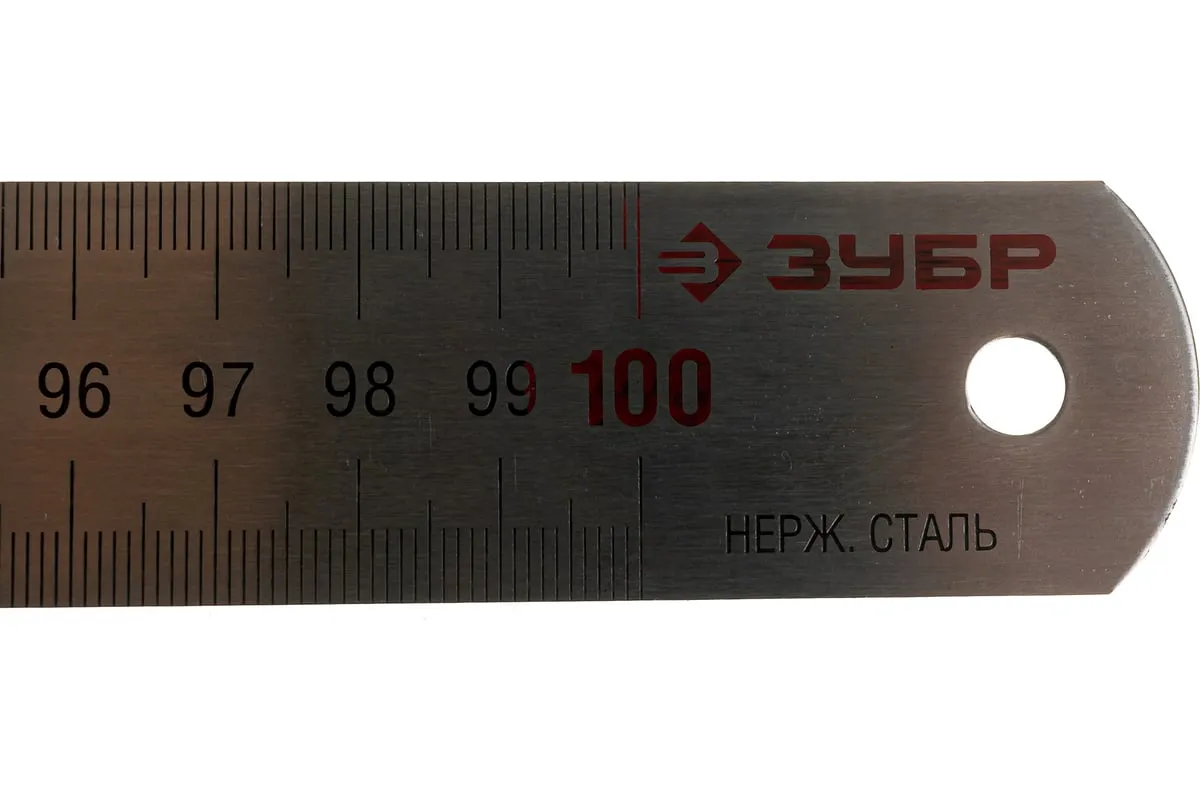 Двухсторонняя линейка 1 м ЗУБР 34280-1.2-100 произведена из нержавеющей стали для долгого срока использования. Шкала нанесена с двух сторон для удобства. На полотне имеется отверстие для подвеса. Инструмент служит для профессионального контроля размеров изделий. Длина составляет 1 метр. Непрерывная шкала 1/2мм / 1мм.