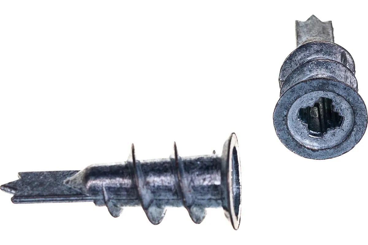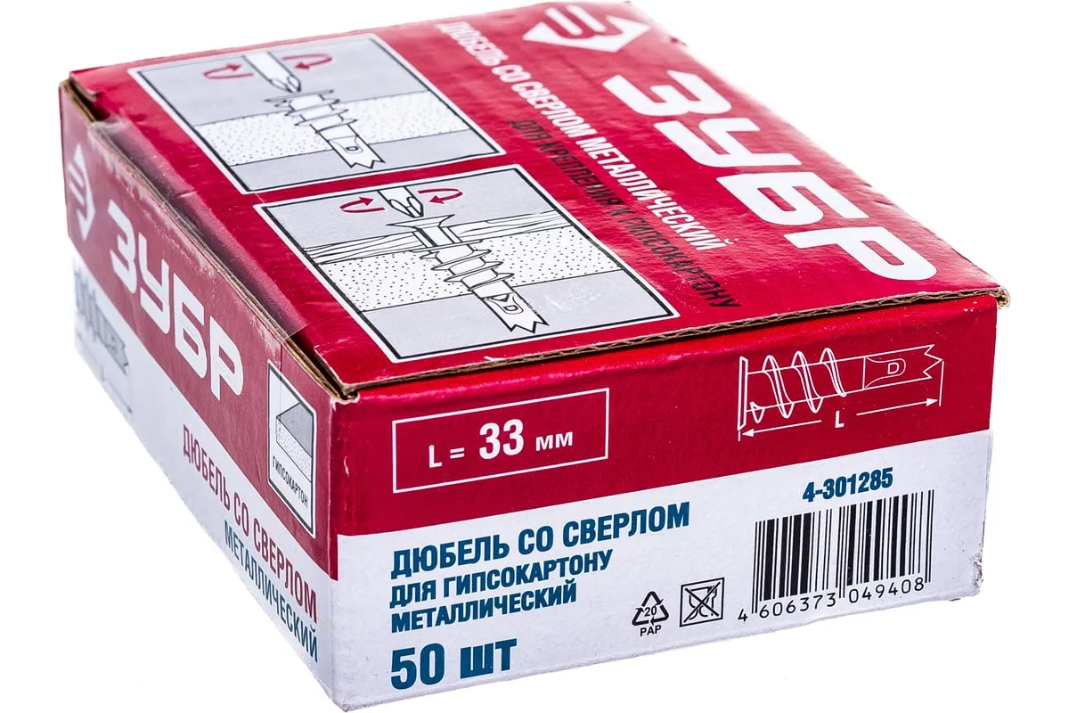 Металлический дюбель ЗУБР 4-301285 типа "Driva" используется при креплении к гипсокартону, например, светильников, плинтусов, выключателей. Фиксация осуществляется с помощью обычного шурупа диаметром 4,5 мм. Шуруп приобретается отдельно. Тип фасовки - ТФ5.