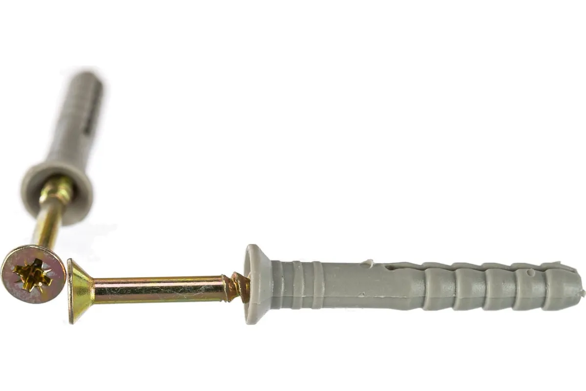 Полипропиленовый дюбель-гвоздь Сибртех 42123 с потайным бортиком, размером 6 х 40 мм, 200 шт. в упаковке, предназначен для закрепления деталей и конструкций на основаниях из бетона, кирпича или камня. Потайной бортик дюбеля обеспечивает максимальный контакт крепежа с прикрепляемым материалом. В комплект поставки входят саморезы со шляпкой типоразмера PZ2. Дюбель-гвоздь применяется при проведении строительных и ремонтных работ, прокладке сетей, а также для решения бытовых задач.