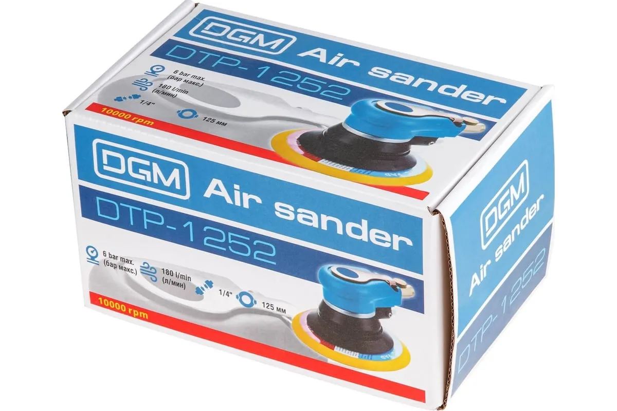 Пневмошлифмашина эксцентриковая DGM DTP-1252 с эргономичным дизайном. Скорость вращения 10000 оборотов в минуту, имеется регулировка скорости. Расход воздуха 180 литров в минуту.