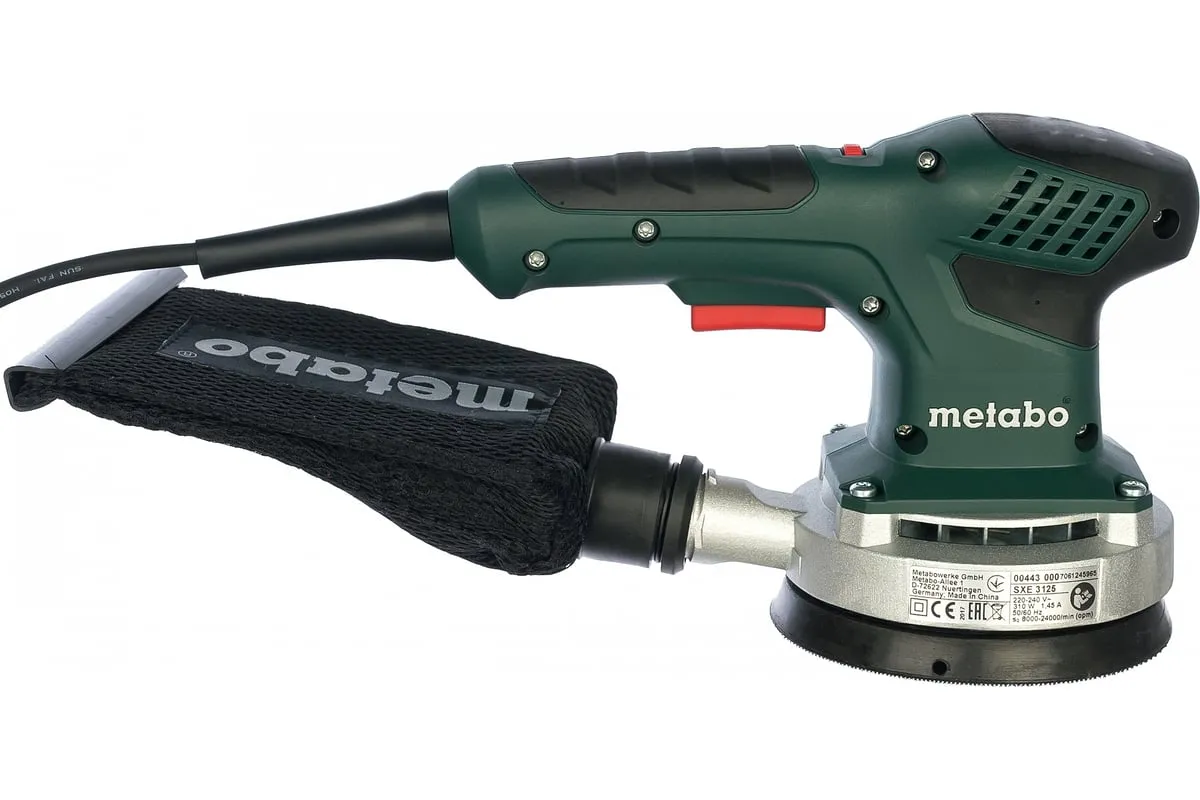 Эксцентриковая шлифмашина Metabo SXE 3125 600443000 оснащена двигателем мощностью 310 Вт. Благодаря возможности подключения пылесоса, рабочее место останется чистым. Специальное колесико для регулировки числа оборотов позволяет подстроиться под конкретный тип материала. Шлифовальная пластина имеет множественные отверстия, что обеспечивает эффективное отсасывание и долгий срок службы. Длина кабеля составляет 4 метра.
