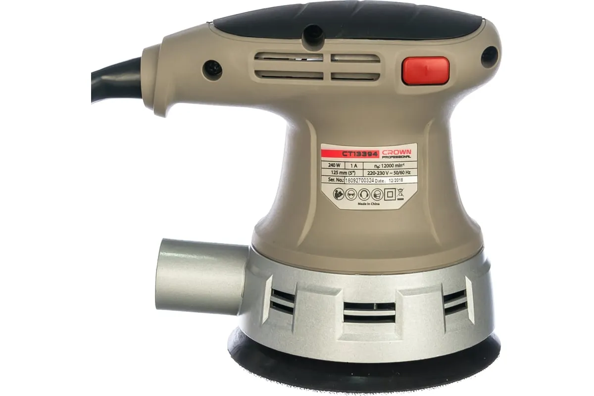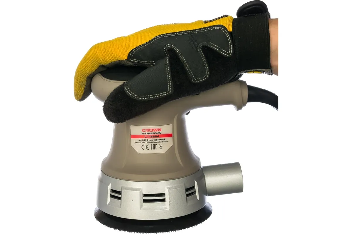 Эксцентриковая шлифовальная машина CROWN CT13394 используется для сухого шлифования различных материалов и покрытий. Возможность фиксации кнопки включения обеспечивает удобство при длительной работе.