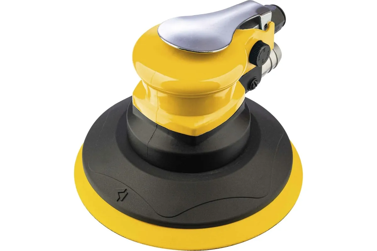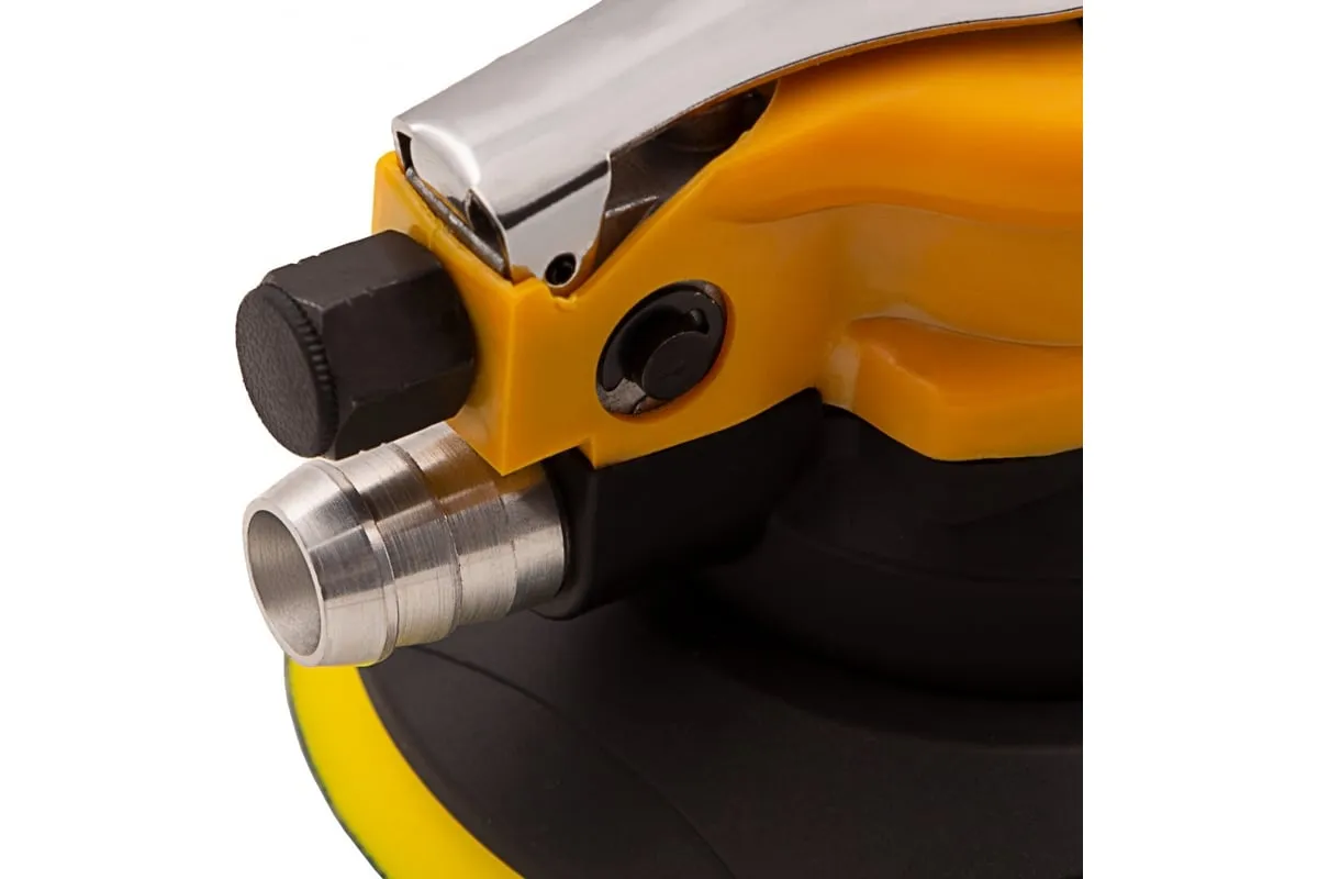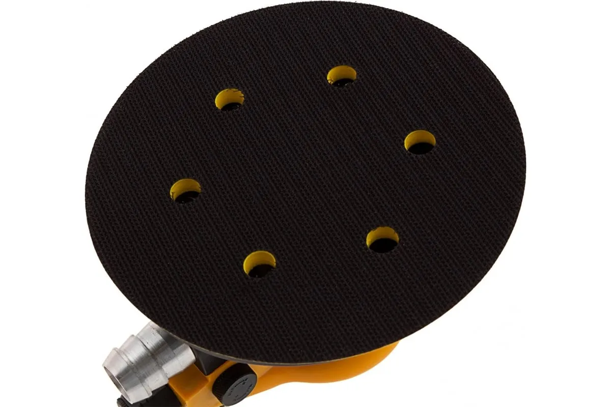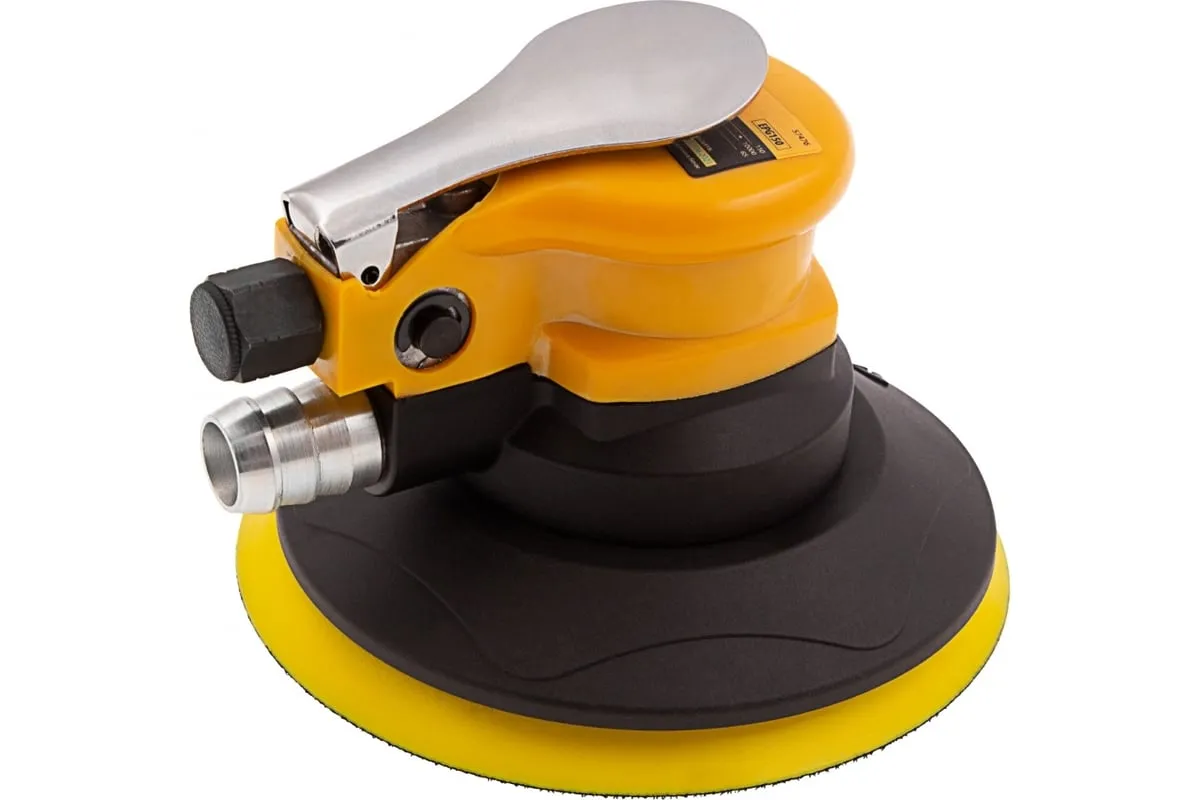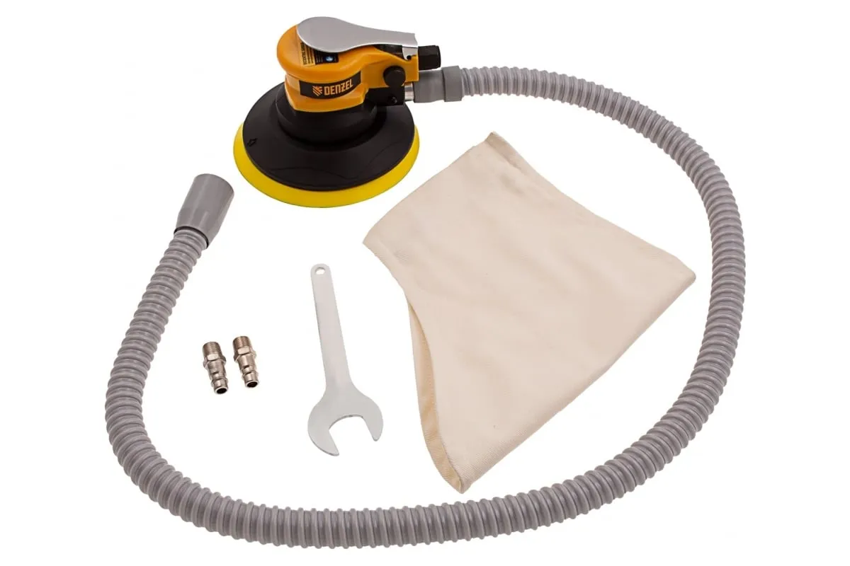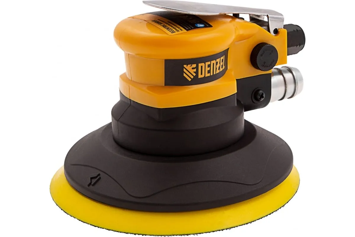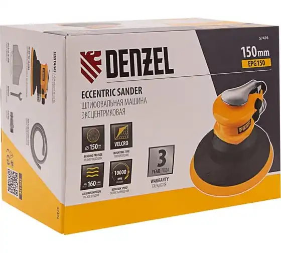 Пневматическая эксцентриковая шлифовальная машина Denzel EPG150 57476 с амплитудой 5 мм развивает скорость вращения 10000 об/мин при среднем расходе воздуха 160 л/мин. Этого достаточно для эффективного шлифования, зачистки и выравнивания любых поверхностей (древесины, металла, пластика и т.д.). С помощью машинки можно без усилий подготовить материал любой твердости к покраске или отделке, выровнять металл перед сваркой. А при использовании более мягкой насадки получится сделать любую поверхность абсолютно гладкой и придать ей дополнительный блеск.Орбитальная шлифмашина предназначена для работы при давлении 6,3 бар, расход воздуха не превышает 200 л/мин. Во время работы не забывайте использовать специальное масло ISO 46, которое можно добавлять как напрямую в инструмент, так и с помощью блока подготовки воздуха Denzel 57469, включающего в себя лубрикатор для автоматической подачи масла.