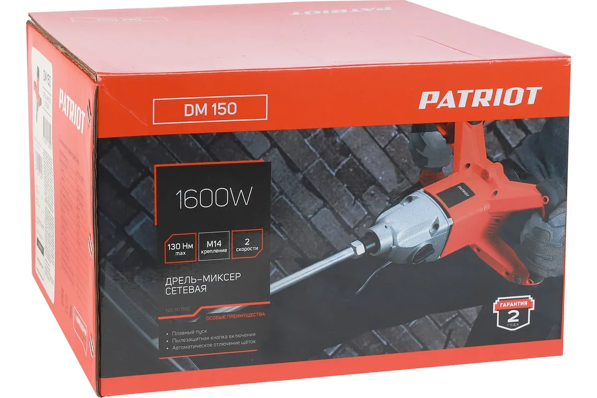 Электрическая дрель-миксер PATRIOT DM 150 120301150 предназначена для замешивания различных растворов, красок и бетона, а так же сверления глубоких отверстий большого диаметра.