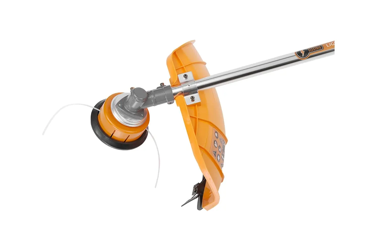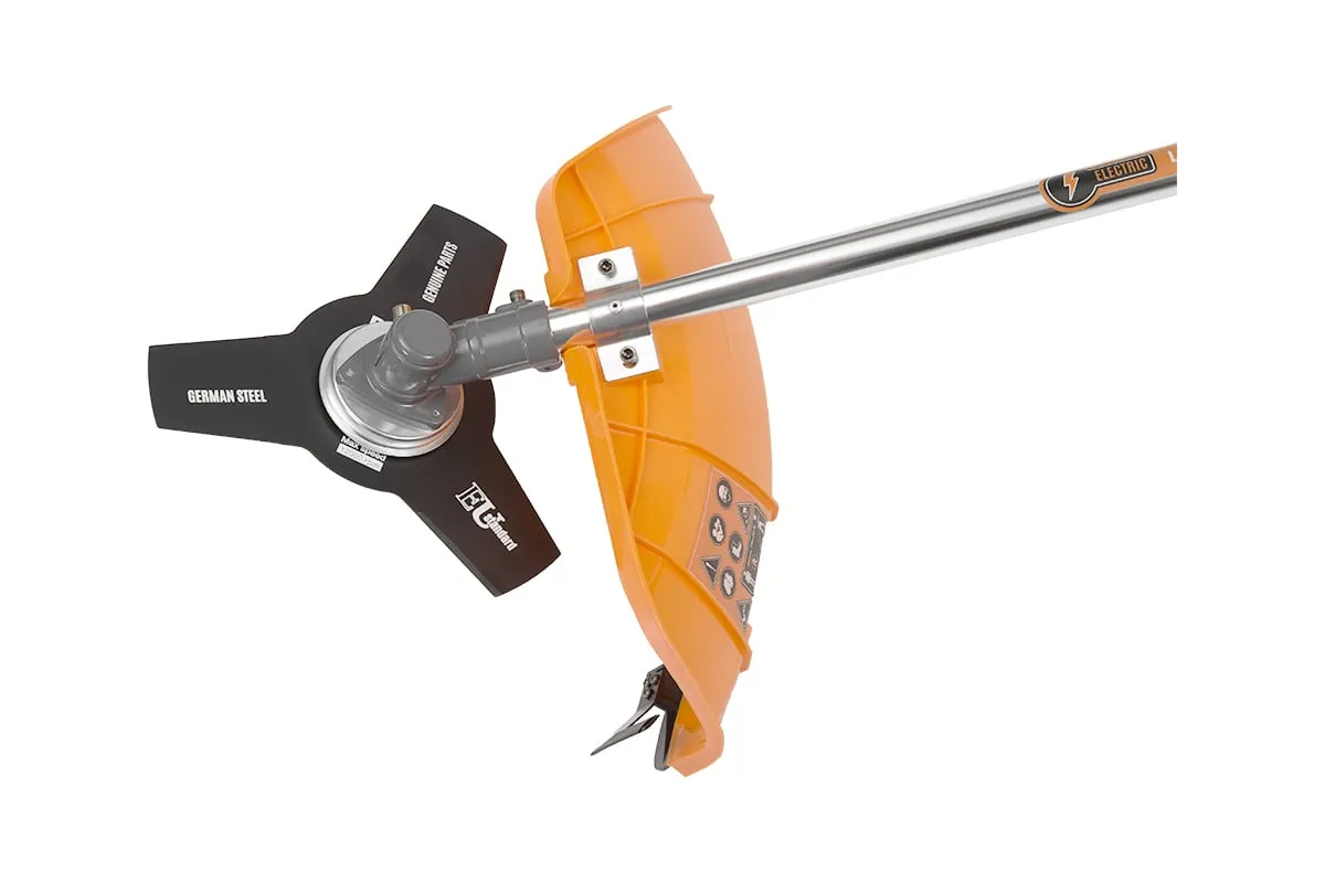 Электрическая коса DAEWOO DABC1400E имеет верхнее расположение двигателя, поэтому можно скашивать даже влажную траву. Для защиты оператора от травм и режущего инструмента от поломки предусмотрен защитный кожух. Разъемная штанга значительно упрощает транспортировку и хранение инструмента. Данный инструмент не выделяет вредных выхлопов и при работе отличается малошумностью. Основание – приводной вал жесткий, это большая редкость для электрокос с верхним двигателем.