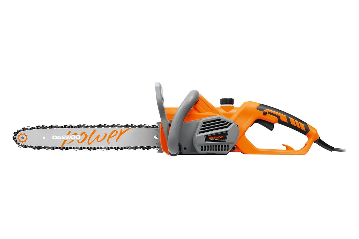 Электрическая пила DAEWOO DACS 2500E используется для распиливания древесины, заготовки дров, обрезки сучьев. Дополнительная рукоятка оснащена оградительным щитком, при касании которого срабатывает тормоз цепи. Для регулировки натяжения пильной цепи не требуются дополнительные приспособления. Имеется специальное окошко - для отслеживания уровня смазки в резервуаре.