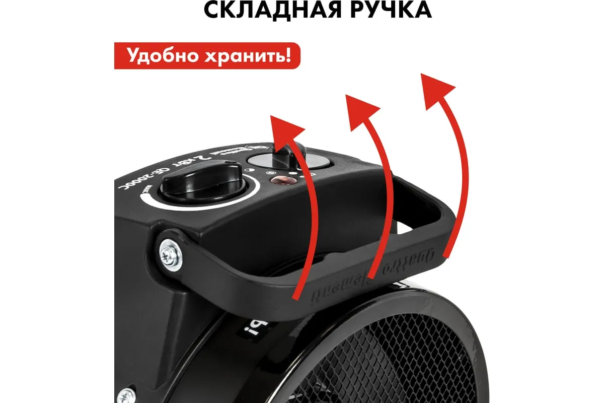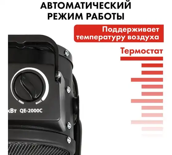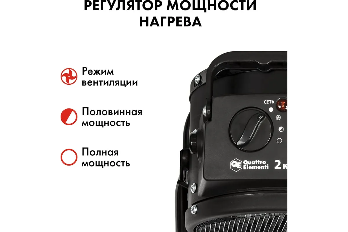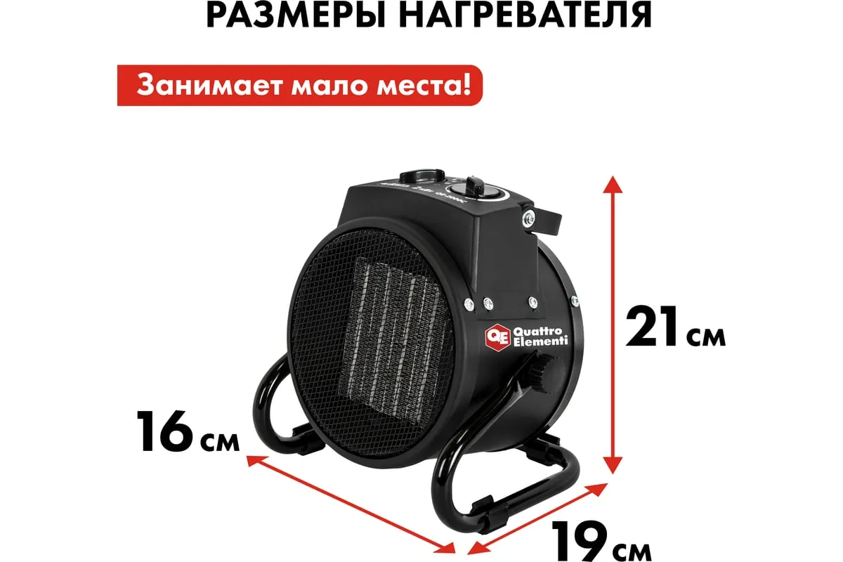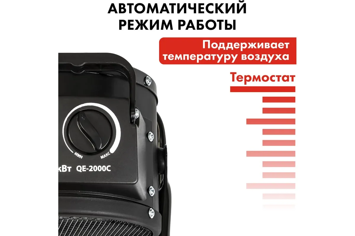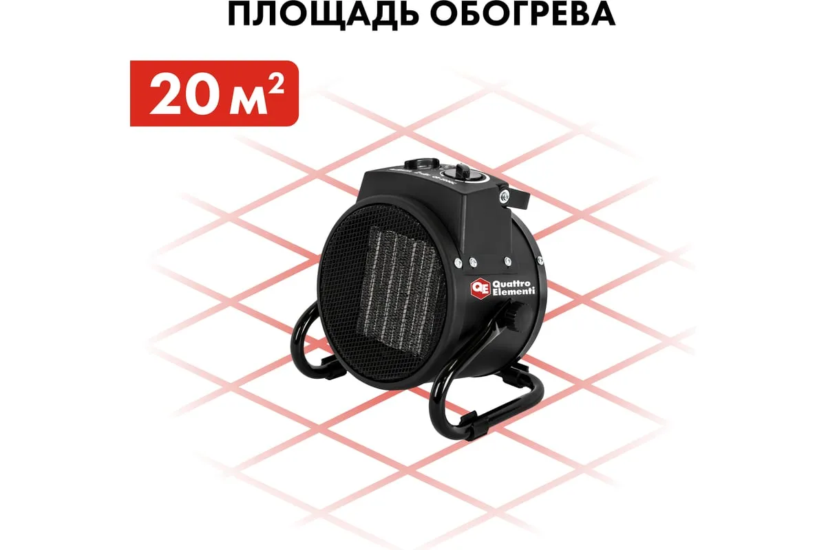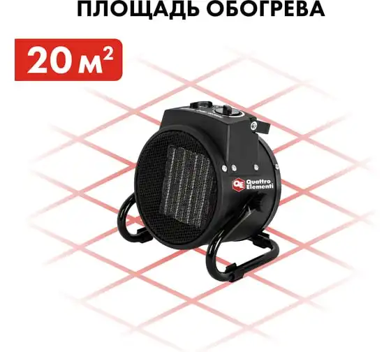Электрическая тепловая пушка QUATTRO ELEMENTI QE-2000 C 649-226 используется для основного или дополнительного обогрев помещений площадью до 20 кв.м. Данная пушка работает от сети 220 В. Для удобной транспортировки предусмотрена ручка. За счет наличия специального винта возможна регулировка угла наклона корпуса по вертикали. Данная тепловая пушка оснащена керамическим нагревательным элементом.