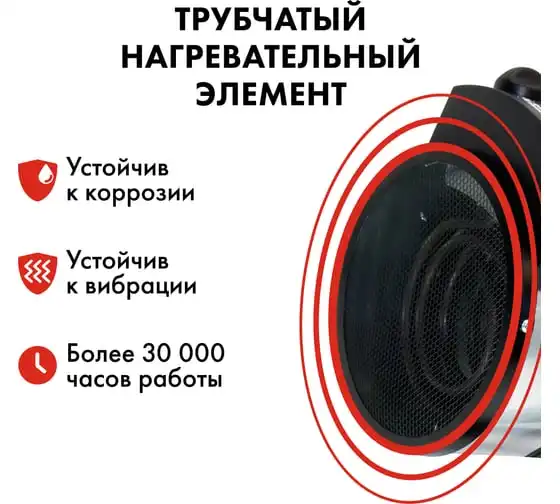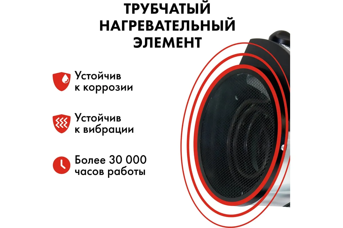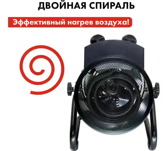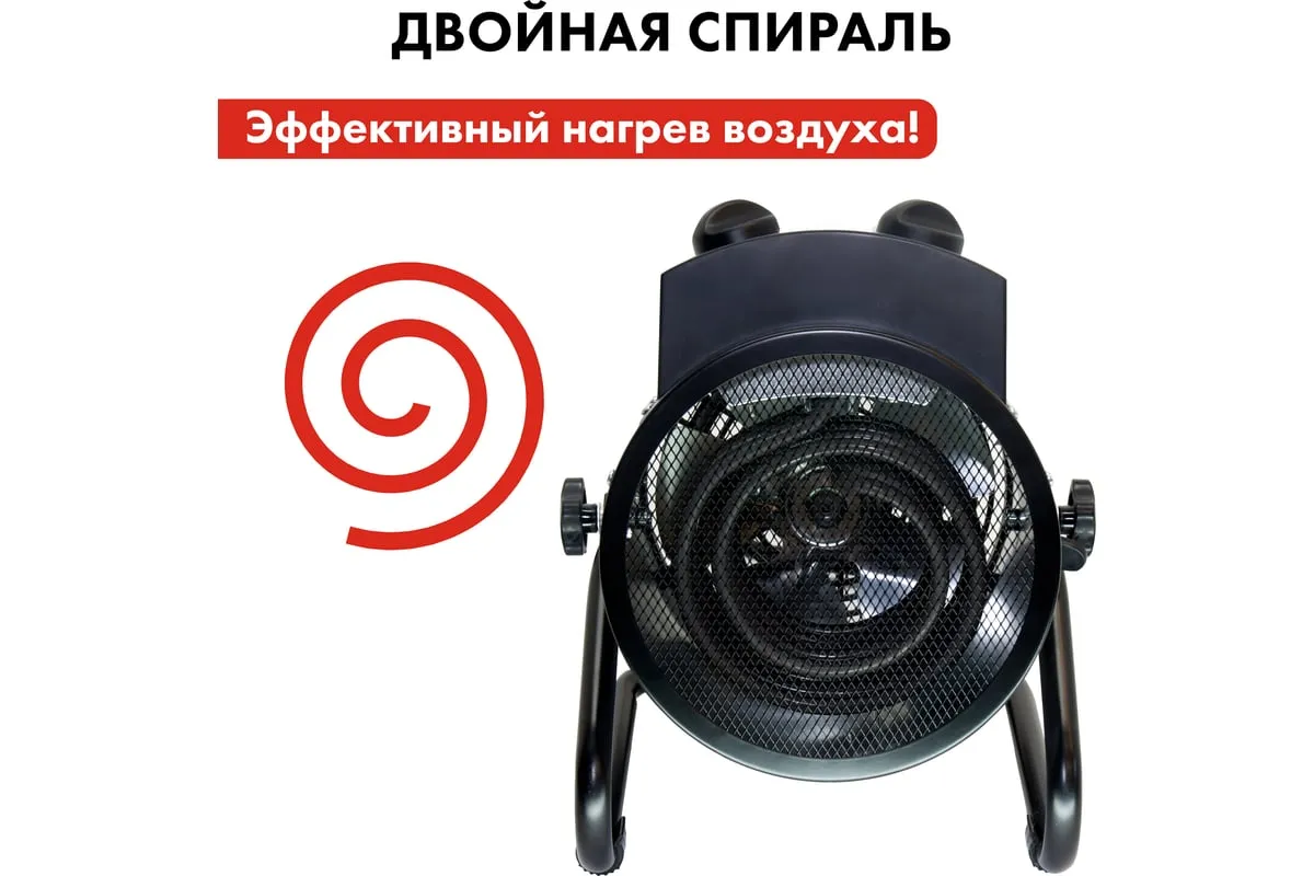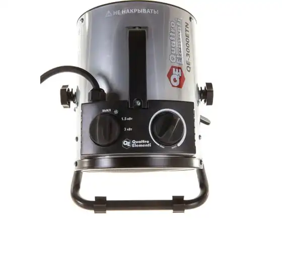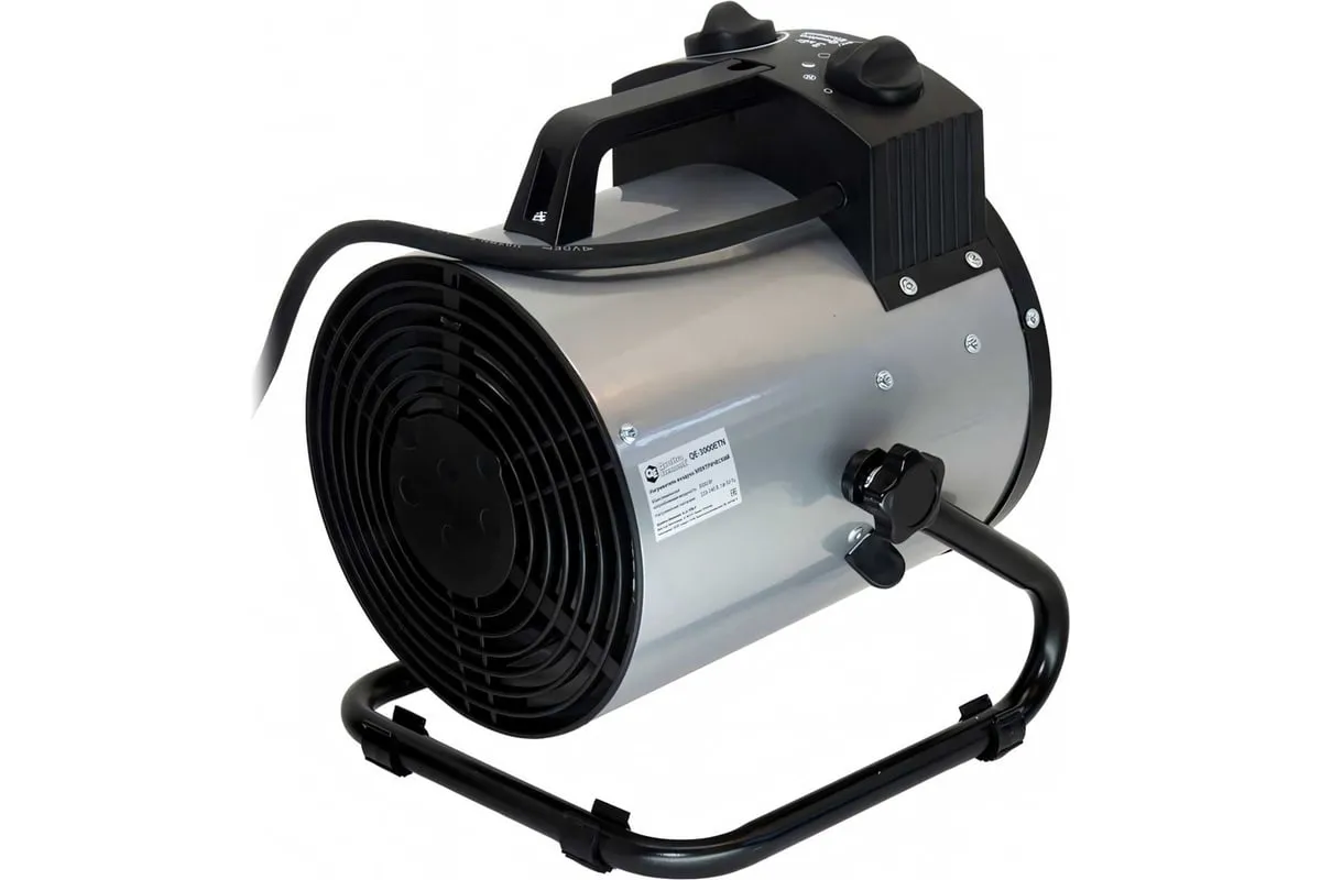 Электрическая тепловая пушка QUATTRO ELEMENTI QE-3000 ETN 649-257 работает от сети 220 В. Данная модель оснащена трубчатым нагревательным элементом, выполненным из нержавеющей стали. Корпус пушки изготовлен из листовой стали. Для удобной переноски предусмотрена ручка. Для регулировки направления воздушного потока по вертикали за счет изменения положения корпуса предусмотрен специальный вентиль.