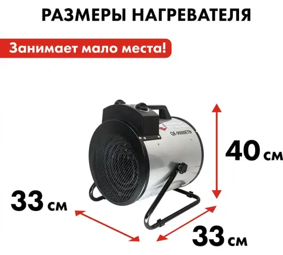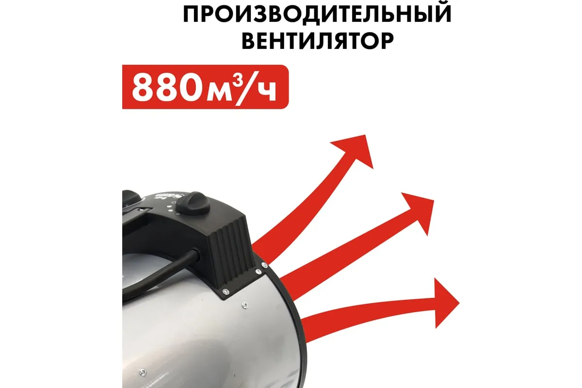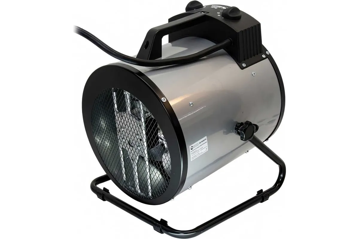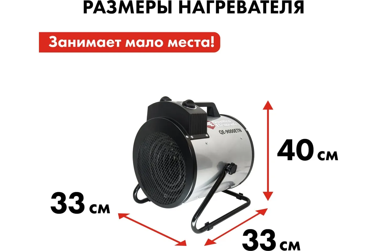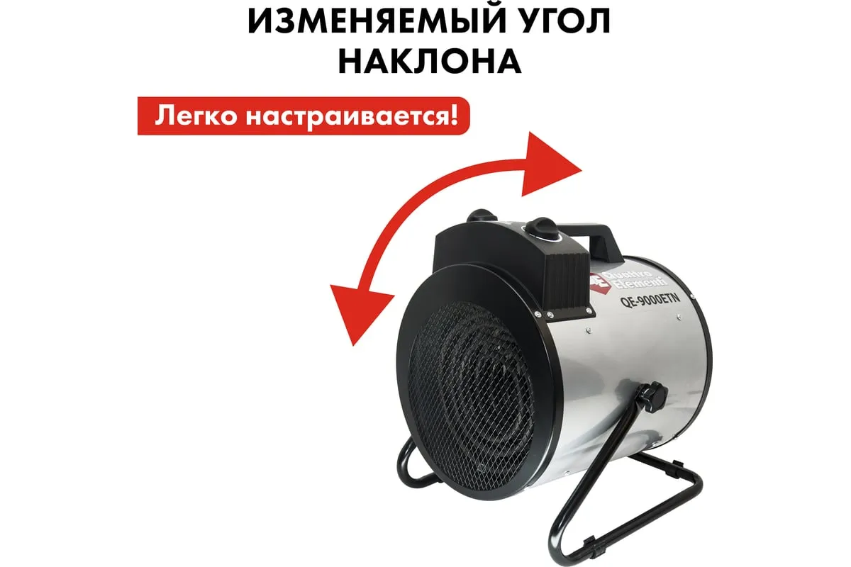 Электрическая тепловая пушка QUATTRO ELEMENTI QE-9000 ETN 649-288 работает от сети 380В. Данная модель имеет две ступени мощности нагрева 4500/9000 Вт, а также режим вентиляции без нагрева. Тепловая пушка оснащена трубчатым нагревательным элементом из нержавеющей стали. Для безопасности использования пушка имеет устройство автоматического отключения при перегреве. Оснащён сетевым проводом 1,2 м сечением 5х1,5 мм2. Для подключения к сети необходимо установить 3-х фазную сетевую вилку.
