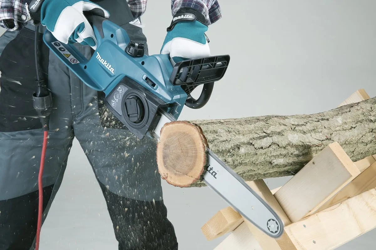 Электрическая цепная пила Makita UC3541A - легкий инструмент для распиливания древесины. Модель оснащена щеточным электроприводом мощностью 1800 Вт. Это позволяет использовать пилу в закрытом помещении. В комплект входит 35-сантиметровая шина, цепь и чехол. Рукоятки обеспечивают удобную работу. Предусмотрен традиционный, инерционный тормоз цепи для безопасной работы с инструментом.