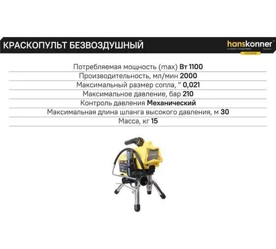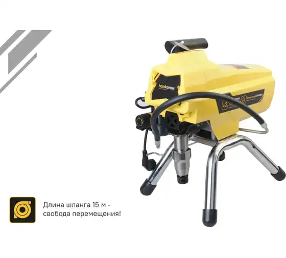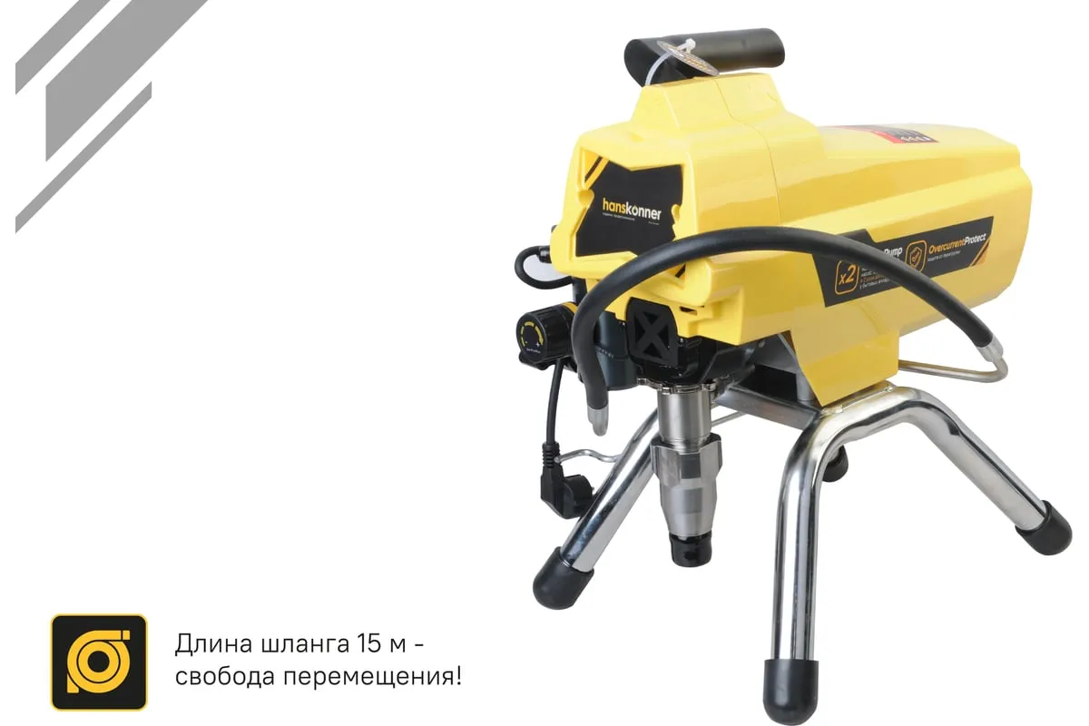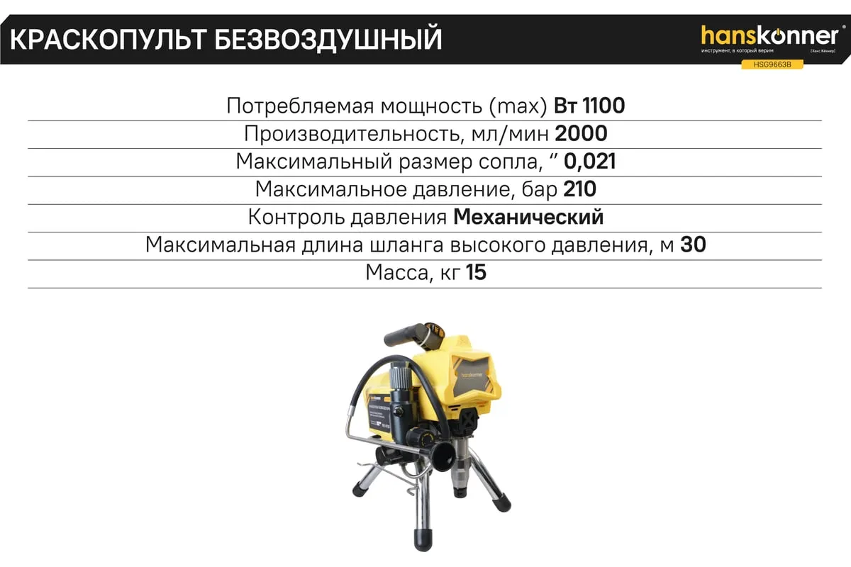 Краскопульт безвоздушный Hanskonner HSG9663B — надежный и продуктивный электроинструмент для нанесения лакокрасочных материалов без использования сжатого воздуха. Из-за большого перепада давления, от 210 Бар в насосе до атмосферного в пространстве, лакокрасочный материал дробиться на мельчайшие частицы и в виде аэрозольного факела оседает на окрашиваемой поверхности. Данная модель отличается качественной механической системой управления давлением, что дает возможность осуществлять интерьерную покраску.Дополнительный фильтр для очистки краски исключает частое засорение сопла. Надежный поршневой насос EndurPump в среднем служить в два раза дольше чем бытовые аналоги. Для долговечности электродвигателя применяется защита от перегрузки.Шланг для подачи краски длинной 15 м.