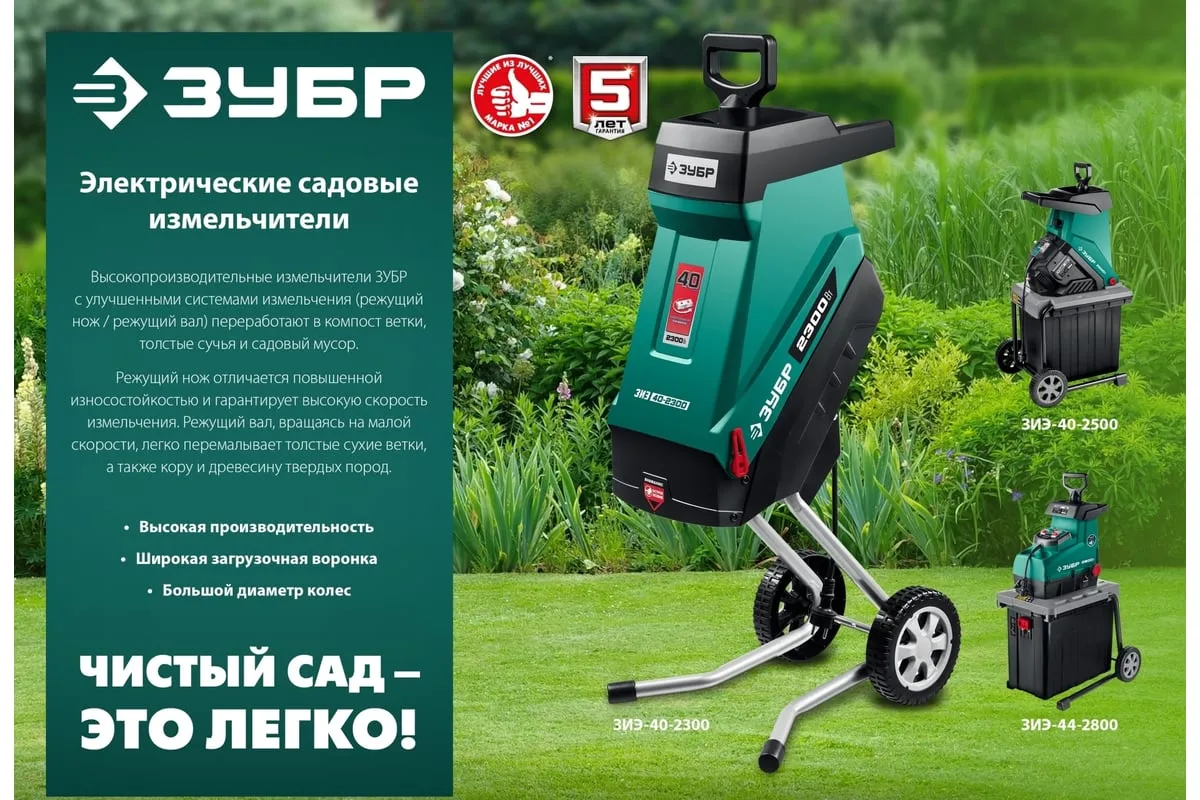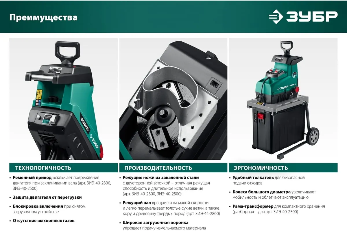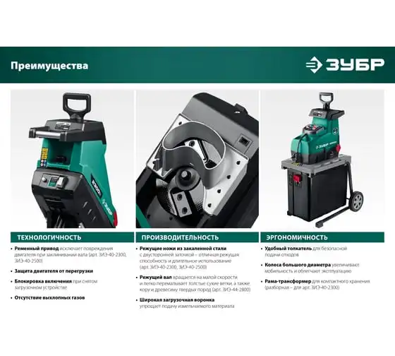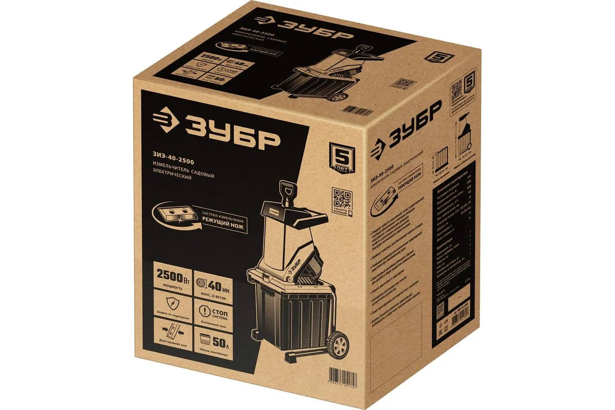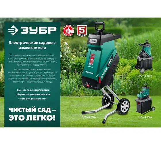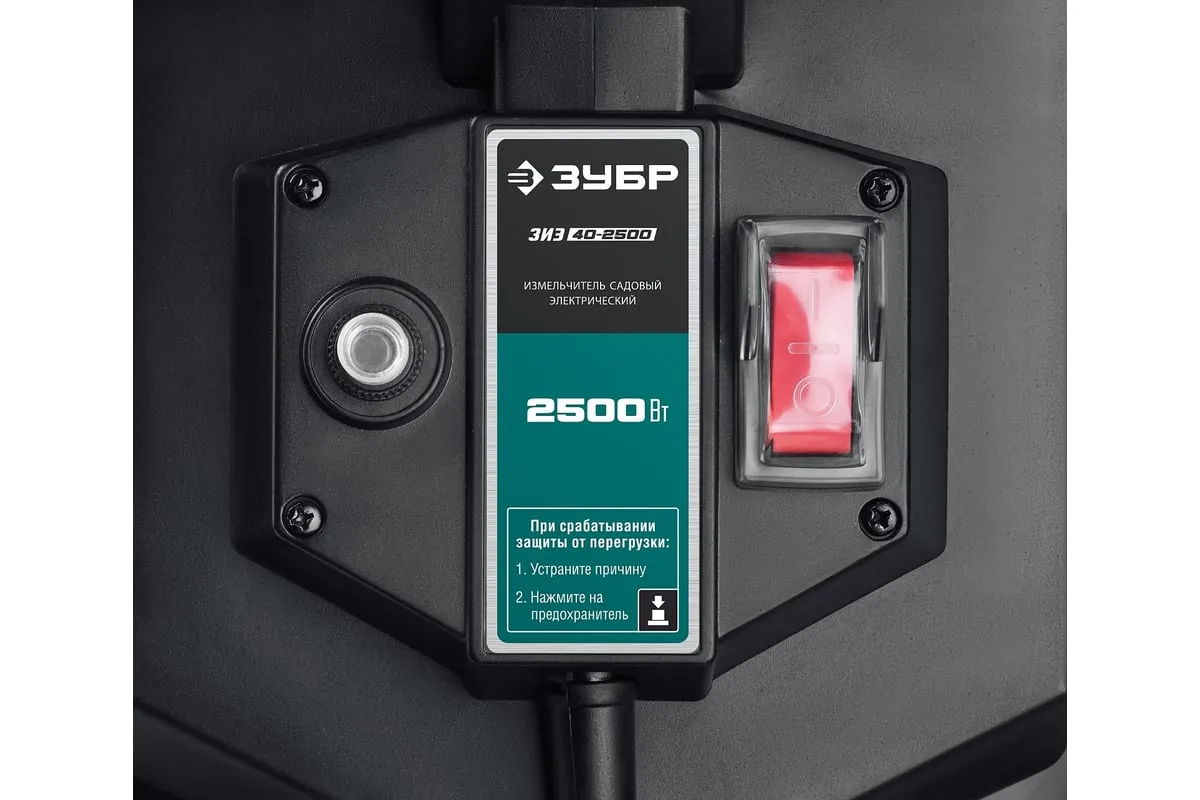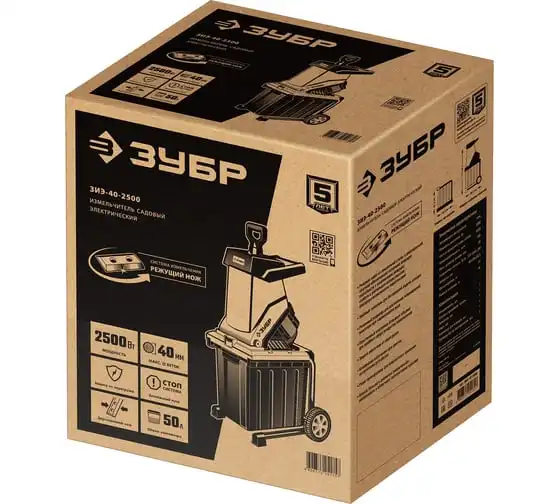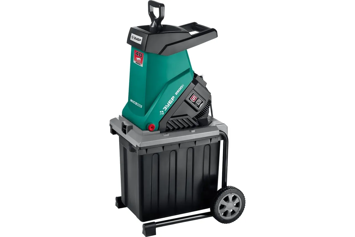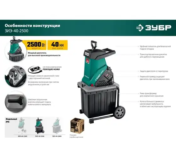 Электрический измельчитель Зубр ЗИЭ-40-2500 применяется для переработки отходов растительного происхождения. Оснащен контейнером на 50 литров. Острые ножи обеспечивают отличную режущую способность. Толкатель служит для безопасной подачи отходов. Большие колеса способствуют удобству перемещения агрегата по участку.