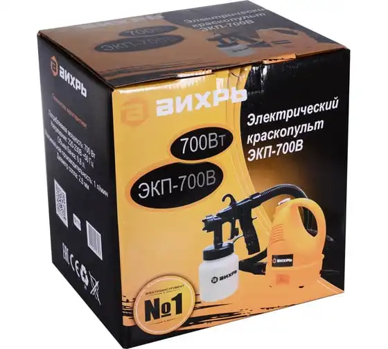 Краскораспылитель Вихрь ЭКП-700В имеет шланг длиной 1,5 м, обеспечивающий возможность маневрирования пистолетом-распылителем. Вынесенное расположение компрессорного блока облегчает процесс длительного использования. В комплекте имеется плечевой ремень и воронка для удобства наполнения бачка. Низкий уровень шума обеспечивает комфорт во время работы. Электрический краскопульт применяется для масляных, эмалевых, пластичных, водоэмульсионных красок, грунтовки, серебрянки и антикоррозийных покрытий.