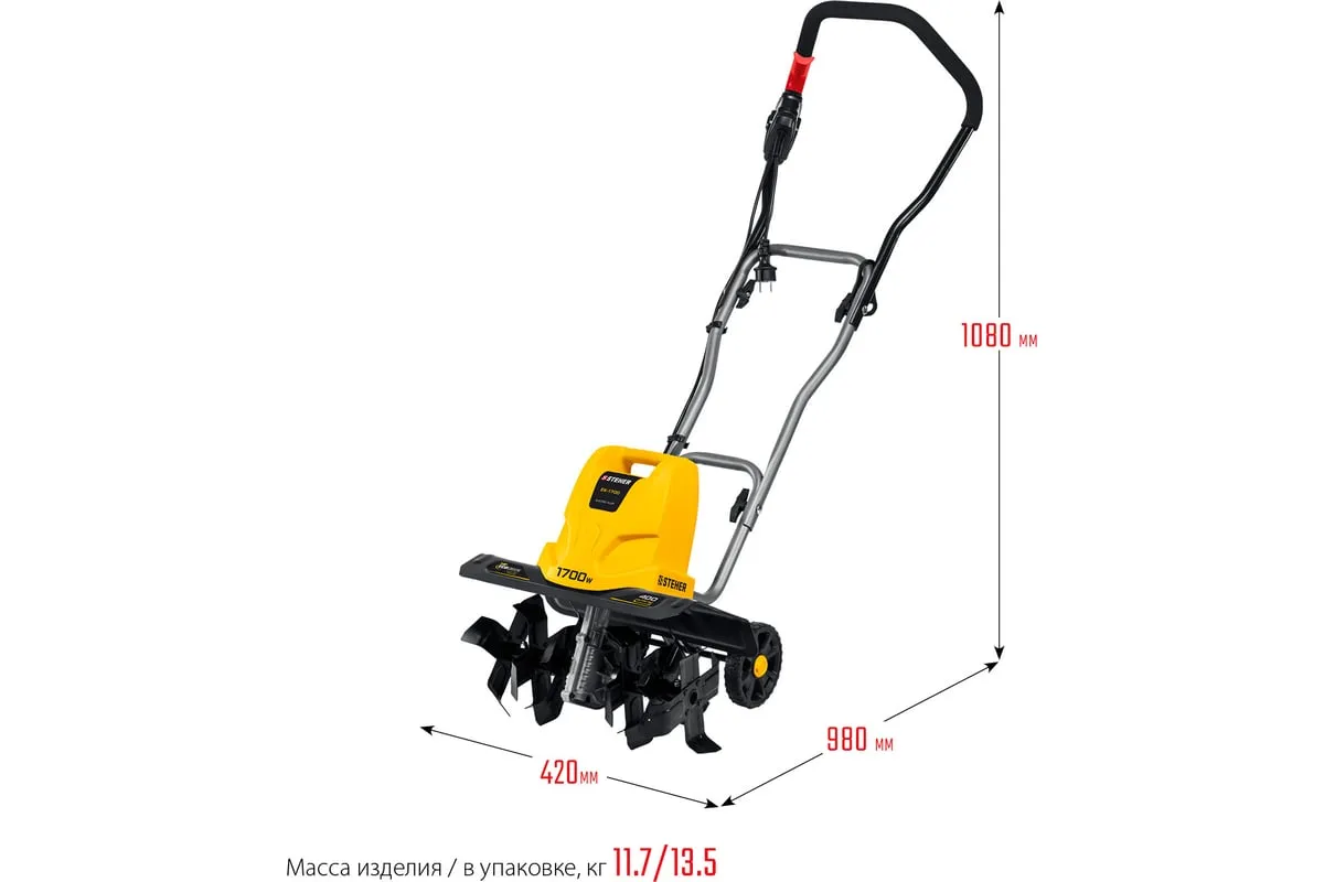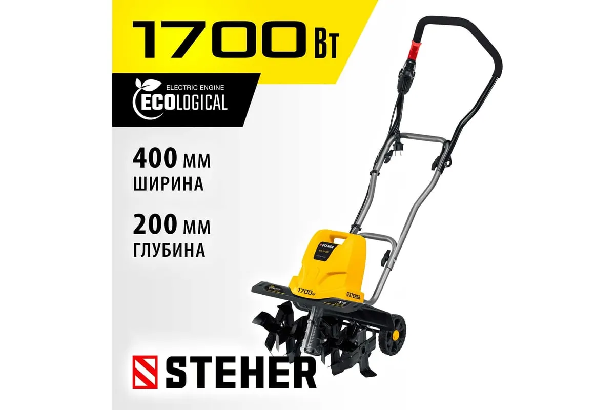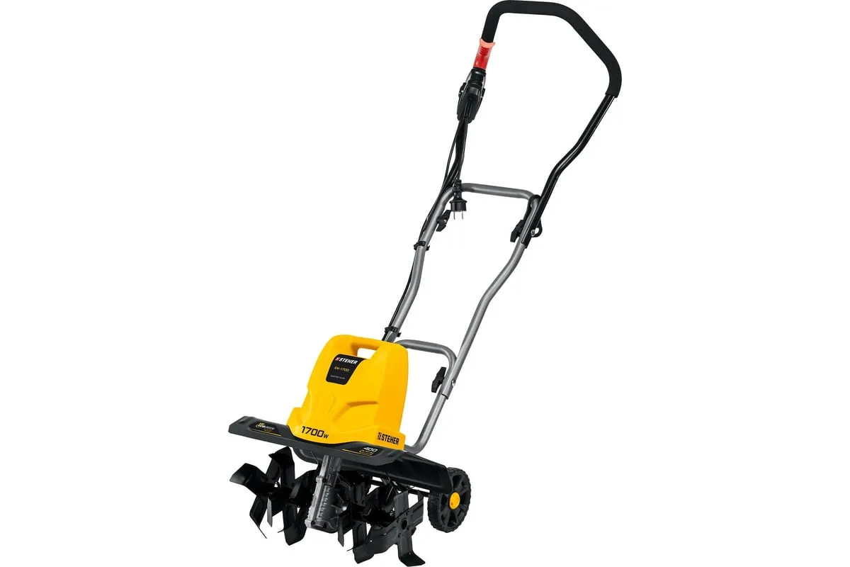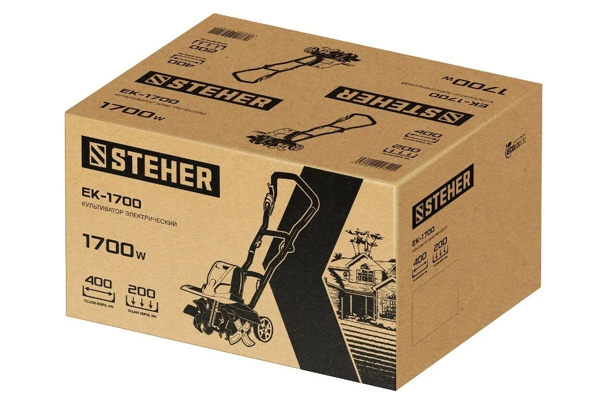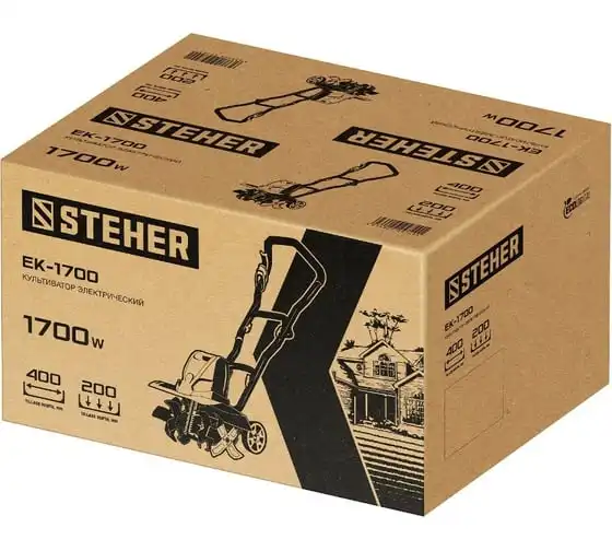 Электрический культиватор STEHER EK-1700 с синхронным двигателем мощностью 1700 Вт используетсядля рыхления и культивации почвына небольшом участках, парниках и теплицах. Оснащен металлическими фрезами с шириной захвата 40 см и обрабатывает почвуна глубину до 20 см.
