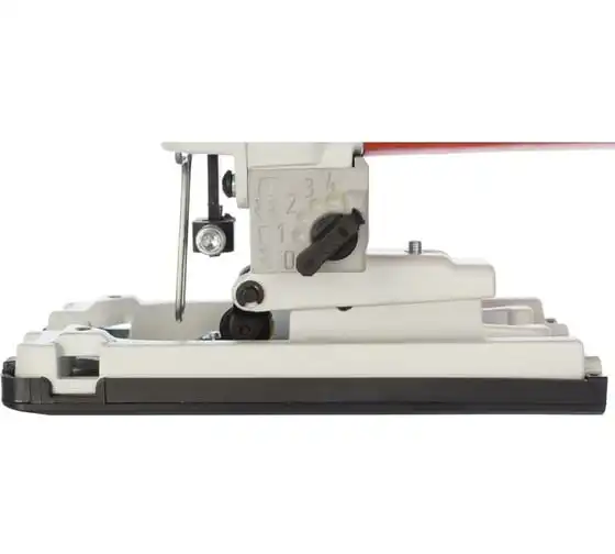 Подошва лобзика сделана из алюминиевого сплава со стальной привинченной накладкой. В комплекте поставки есть антифрикционная пластмассовая накладка (надевается дополнительно).