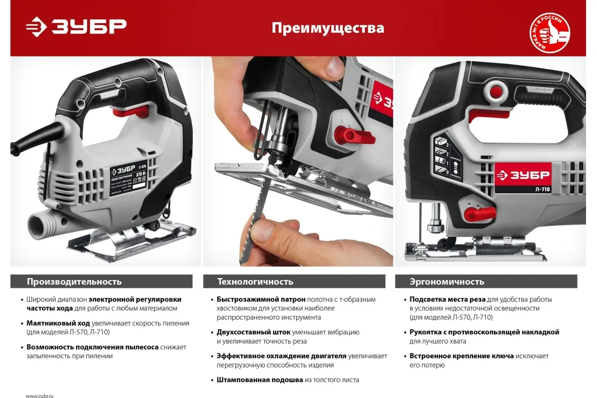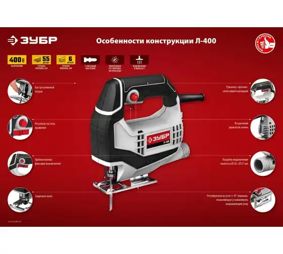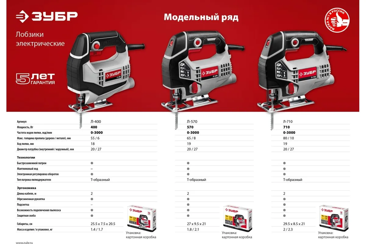 Электрический лобзик ЗУБР 400 Вт Л-400 предназначен для домашних мастеров. Подходит для пиления древесины, фанеры, ДСП, пластика, металла (при наличии соответствующей оснастки). Быстрозажимной патрон позволяет производить замену полотнабез вспомогательных принадлежностей. Электронная регулировка частоты хода в широком диапазоне помогает подобратьоптимальный режим в зависимости от задачи.