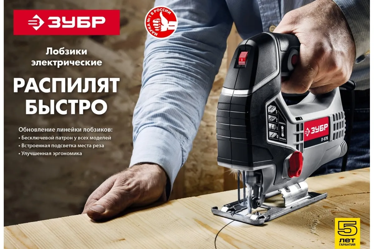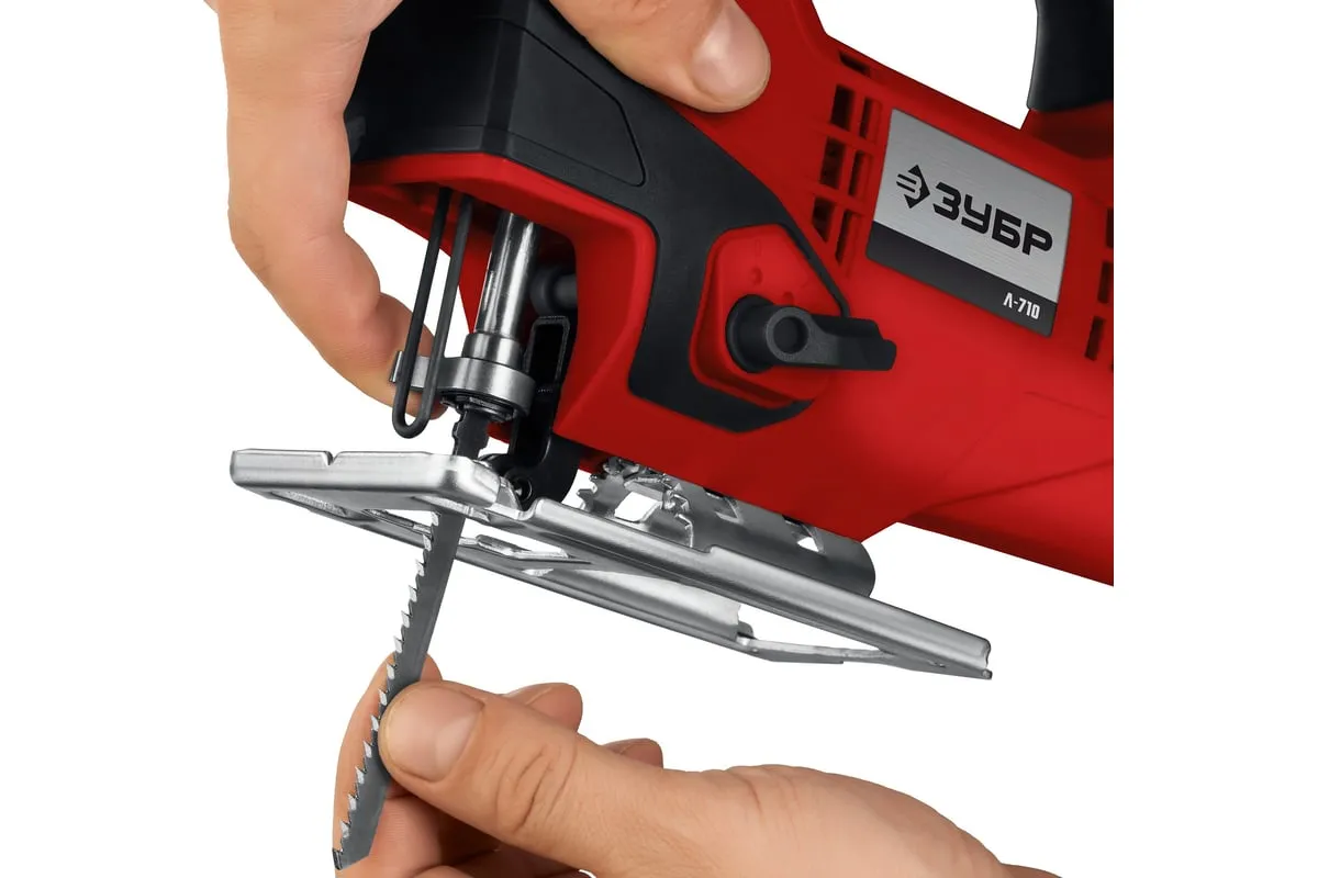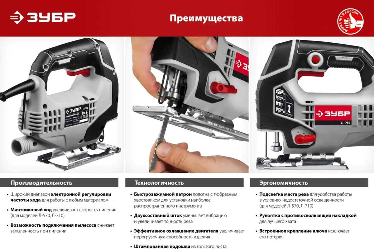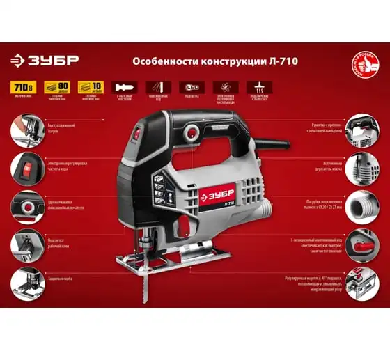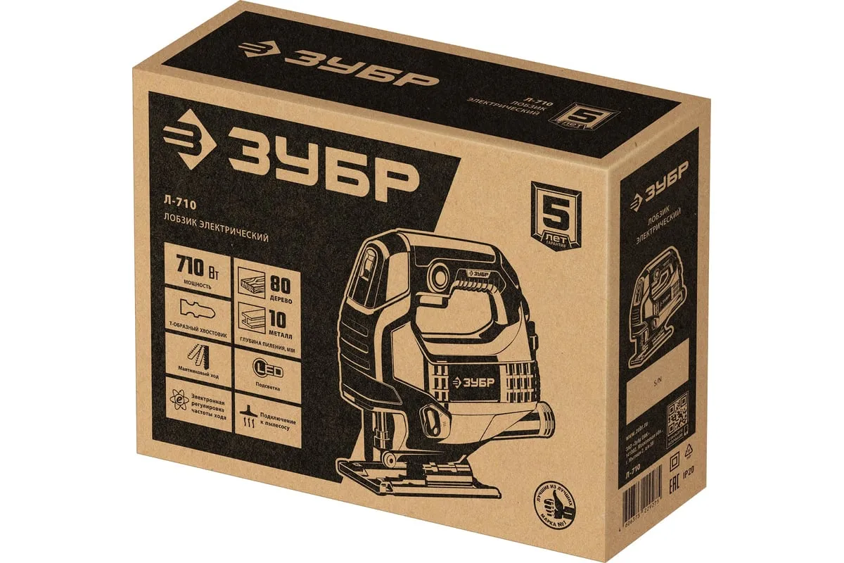 Электрический лобзик Зубр 710 Вт Л-710 служит для создания продольных, поперечных и фигурных пропилов в заготовках из древесины, фанеры, ДСП, пластмассы, металла. Оснащен достаточно мощным двигателем, что способствует хорошей производительности.