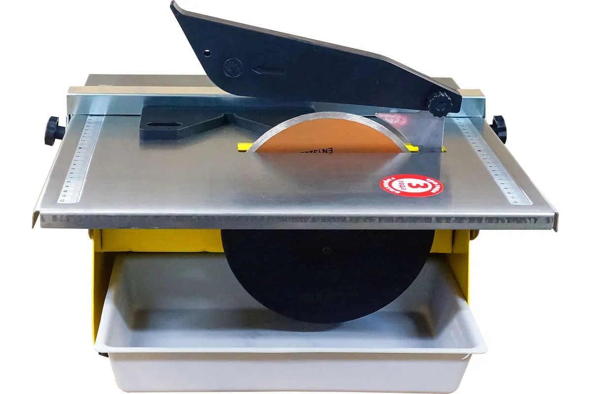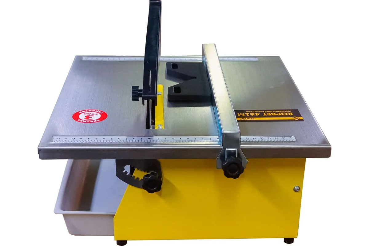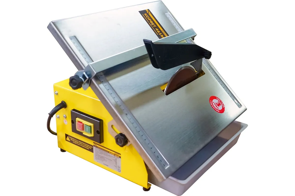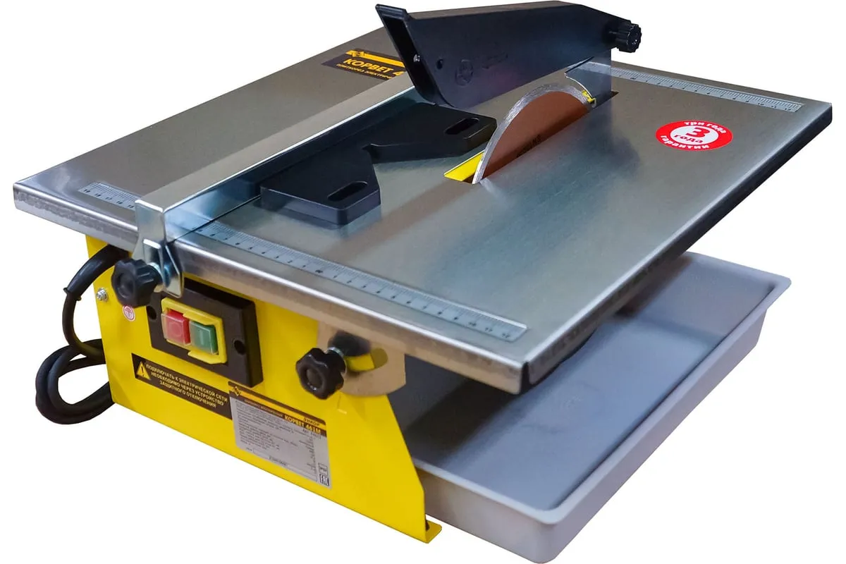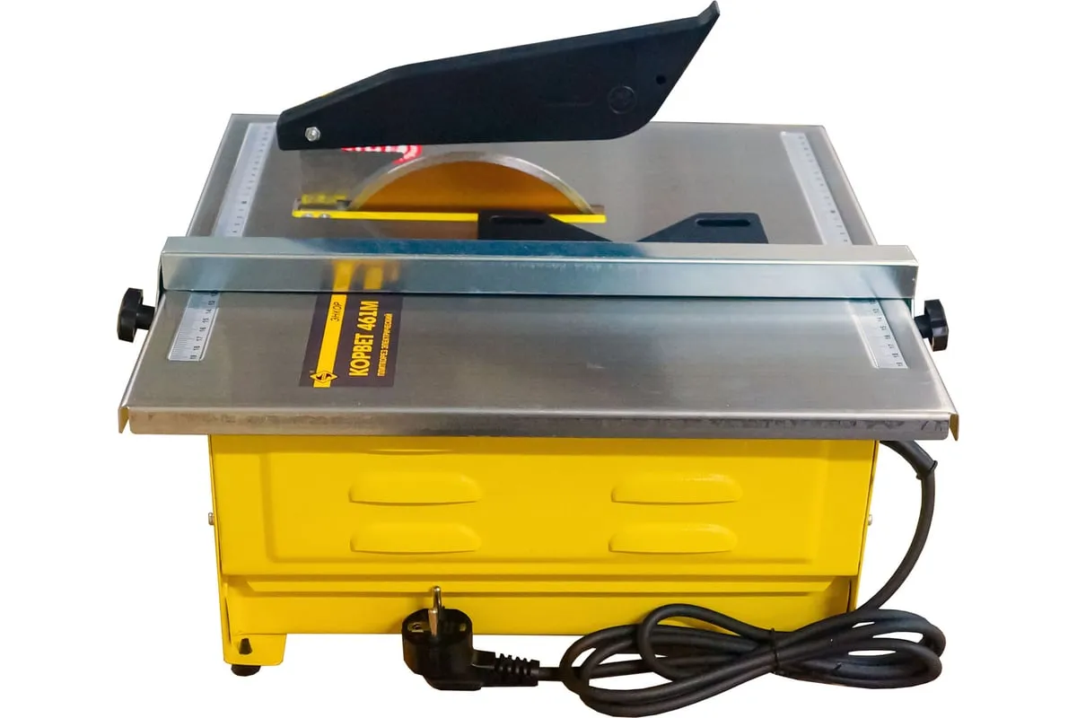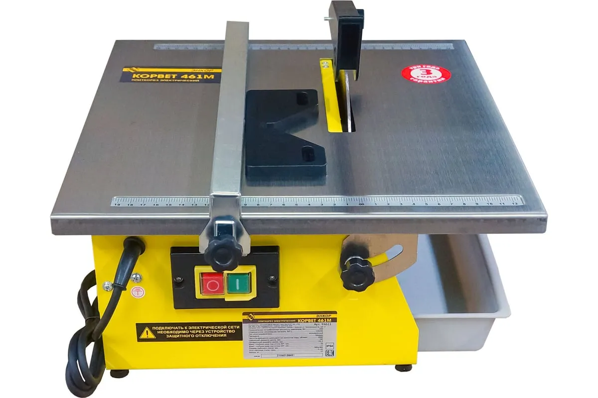 Электрический плиткорез Энкор Корвет 461М 94611 оснащается асинхронным двигателем, при помощи которого станок развивает необходимую мощность для резки плитки.