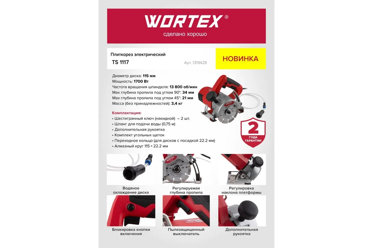 Электрический плиткорез предназначен для сухого и мокрого раскроя камня, керамики, гранита, мрамора и других твердых материалов. Отличается небольшими размерами, малым весом и высокой мощностью. Имеет регулируемую глубину пропила, а также регулируемую платформу: под углом 90° максимальная глубина пиления составляет 34 мм, при наклоне диска до 45° - 21 мм. Посадочный диаметр составляет 20 мм. При работе с переходным кольцом (идет в комплекте) возможна установка дисков с посадочным диаметром 22.2 мм. Обладает прорезиненной накладкой на основной рукоятке, а также блокировкой кнопки включения. Металлический кожух диска защищает оператора от вылетающих частиц обрабатываемого материала. Возможна установка системы подачи воды в зону реза. Пылезащищенный выключатель. Возможна установка диска с диаметром 110 мм.