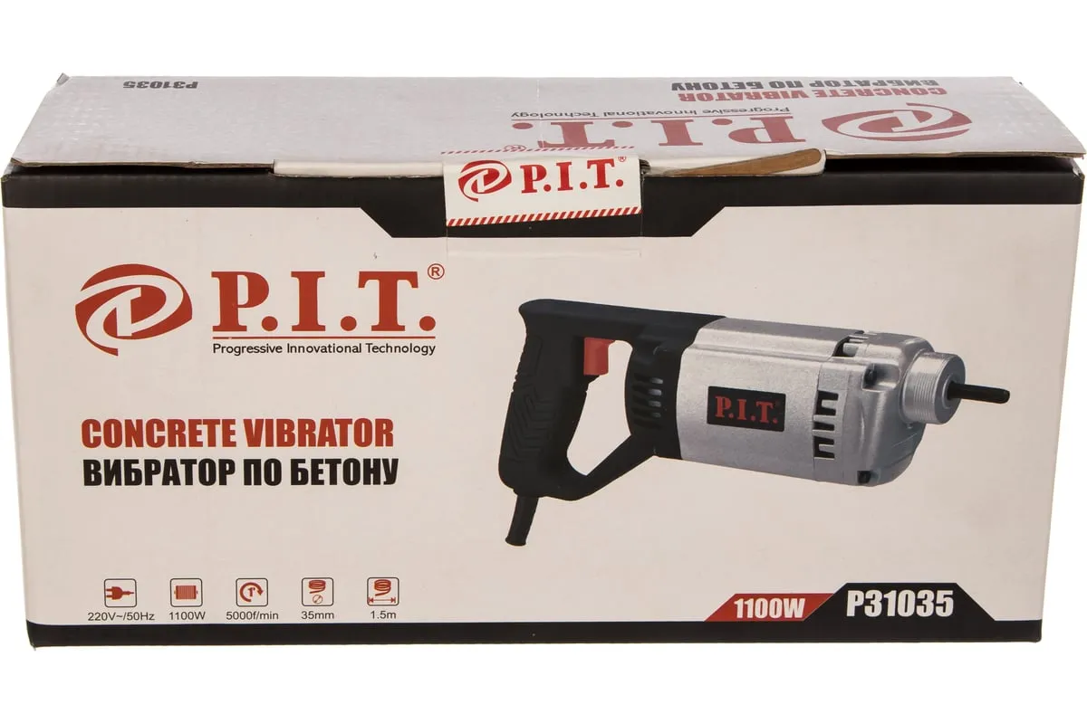 Электрический ручной вибратор для бетона P.I.T. P31035 представляет собой портативное оборудование, которое предназначено для быстрого и полного удаления воздушных пузырьков из бетонной смеси. Прибор незаменим при заливке фундаментов, стен, колонн.