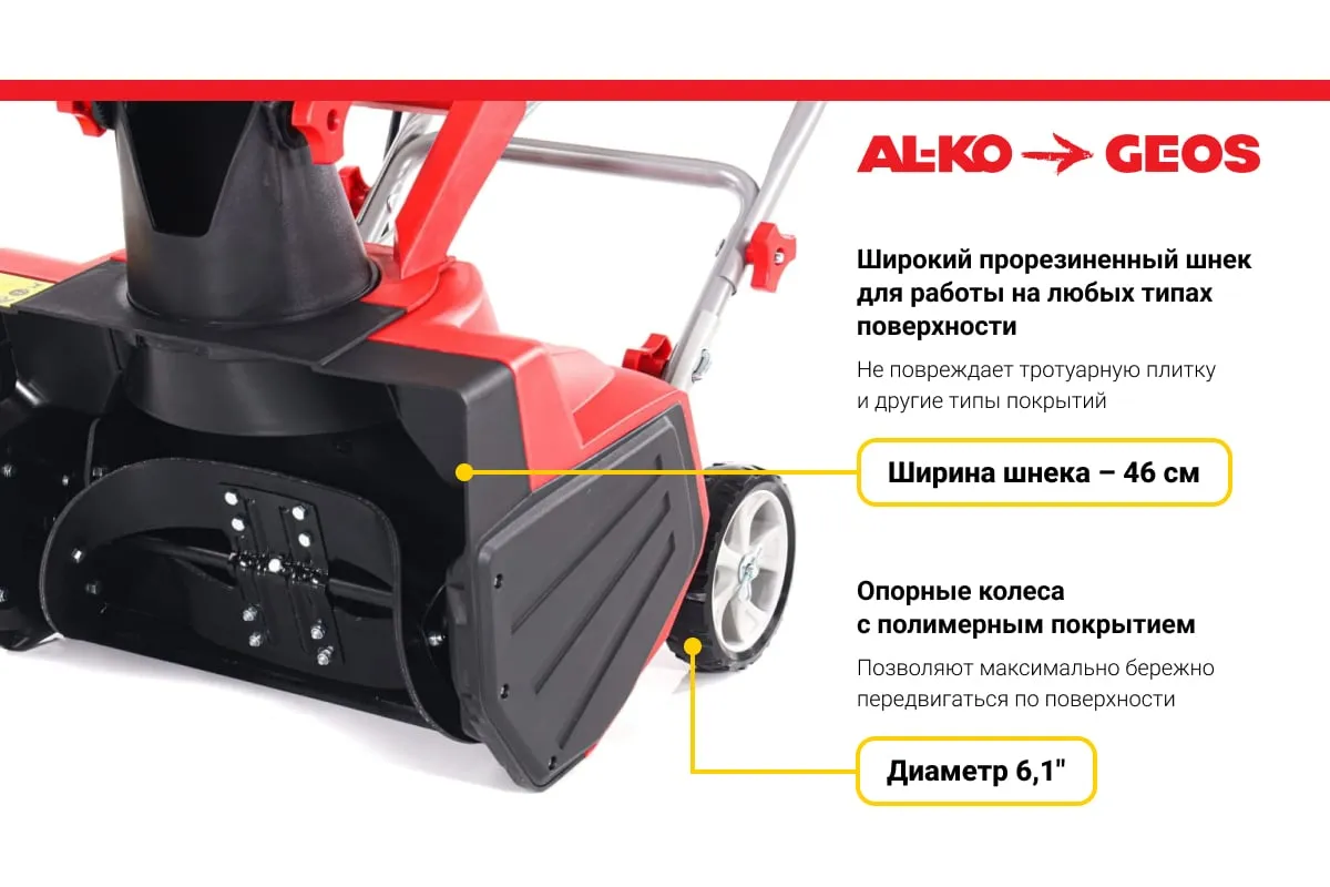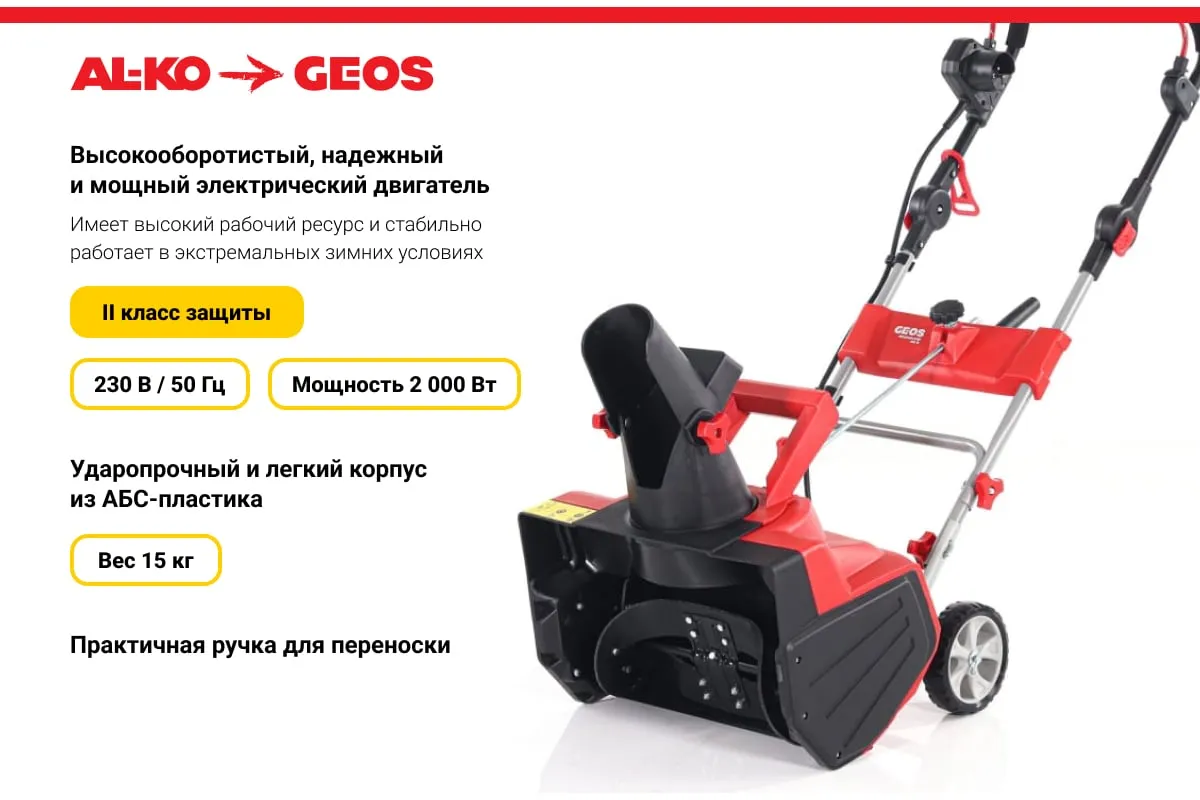 Электрический снегоуборщик GEOS by Alko SnowLine 46 E 2212932 предназначен для расчистки территории от свежевыпавшего снега.