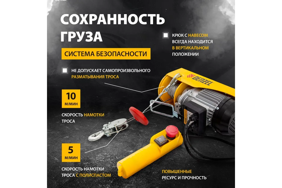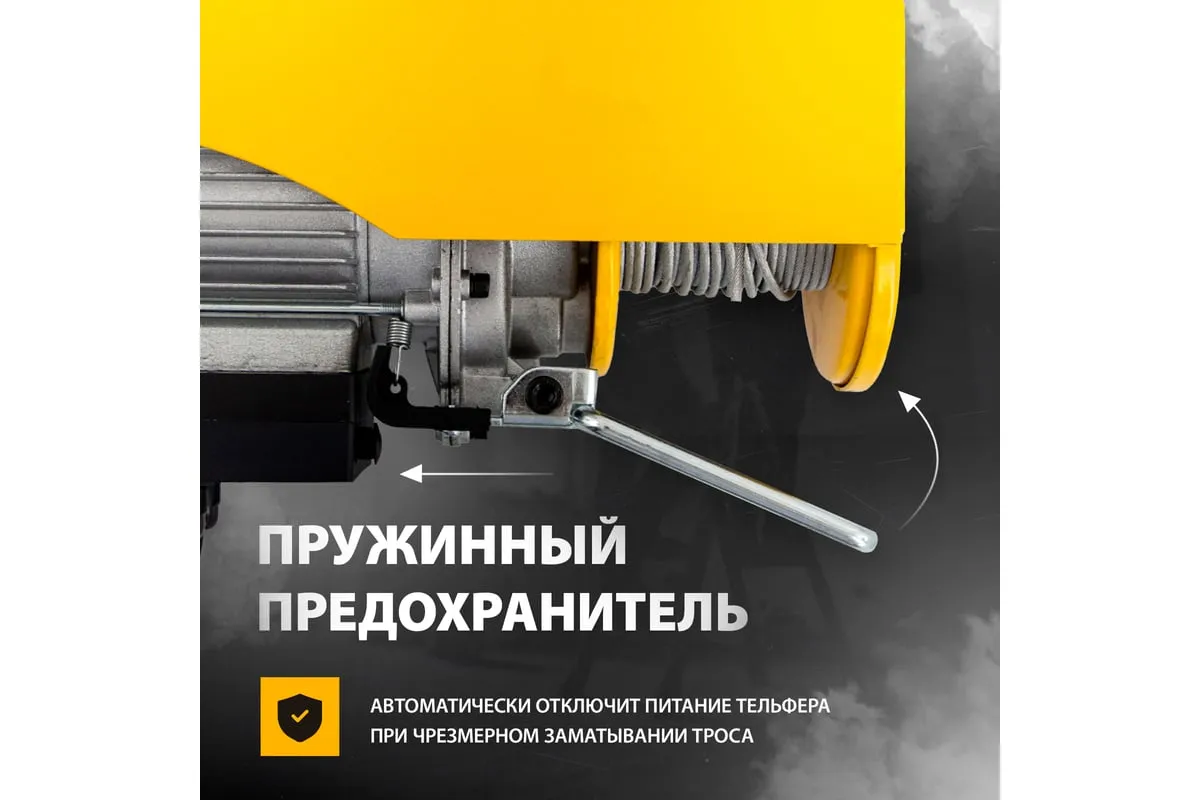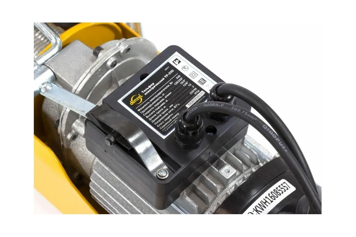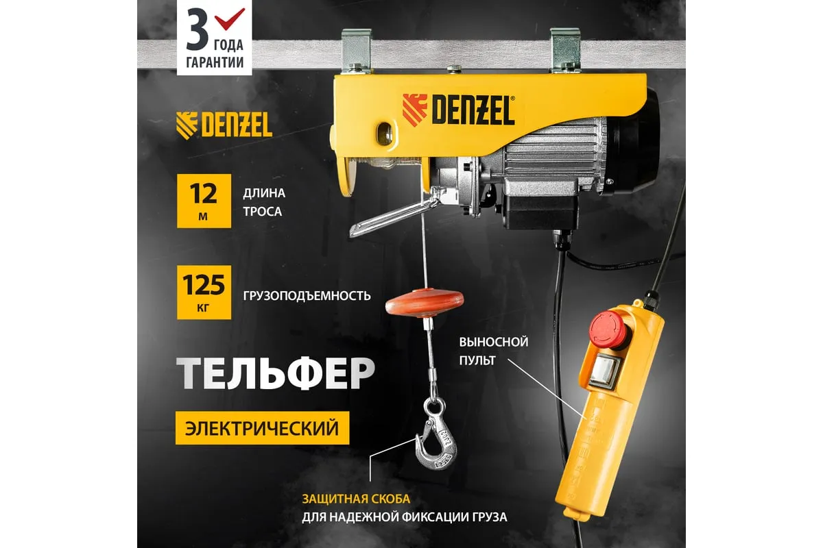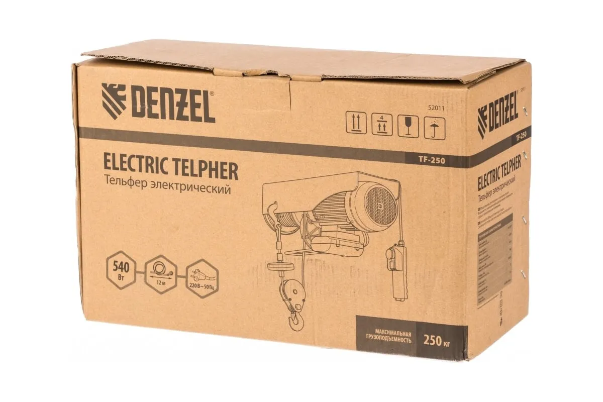 Электрический тельфер DENZEL TF-250 0,25 т, 540 Вт, высота 12 м, 10 м/мин 52011 служит для подъема грузов в условиях строительной площадки, производственного цеха, авторемонтной мастерской. Модель с электроприводом существенно снижает нагрузку на оператора: перемещение предметов осуществляется без применения физических сил рабочего. В комплект поставки входит набор кронштейнов, что позволяет легко и быстро крепить оборудование на стальной балке.