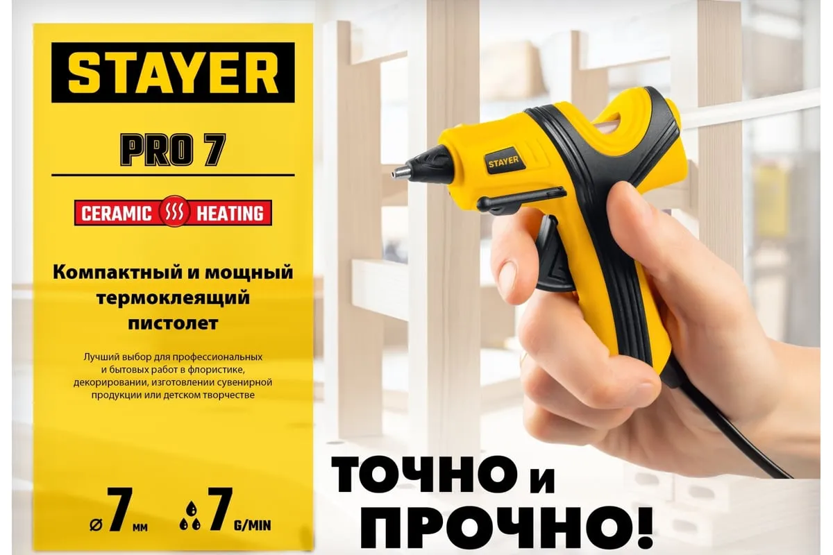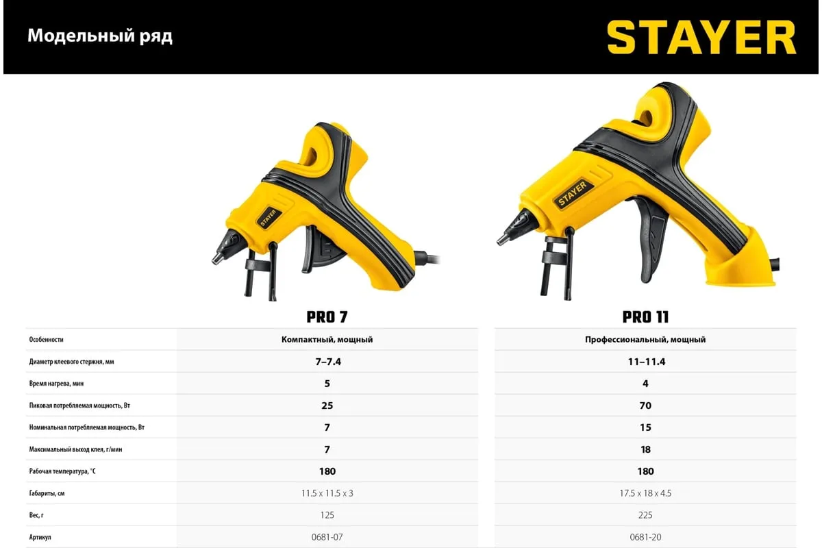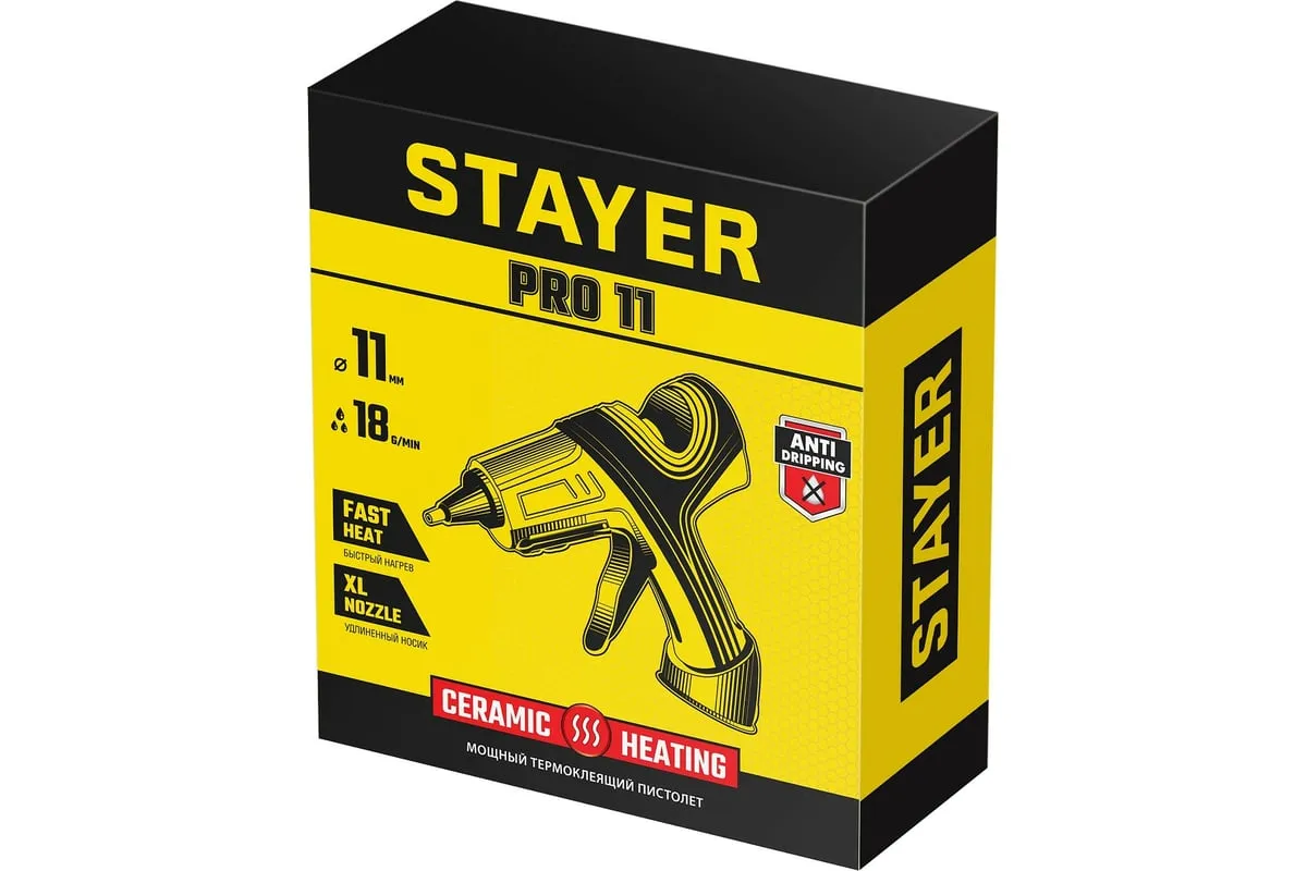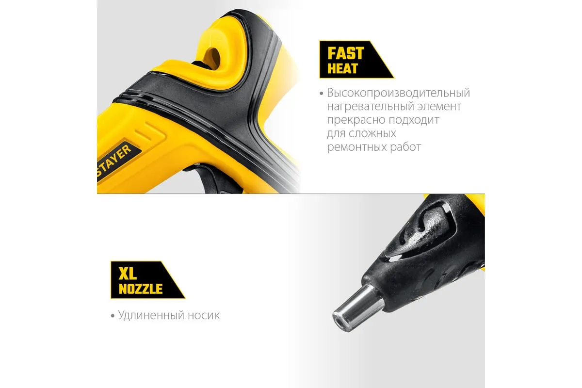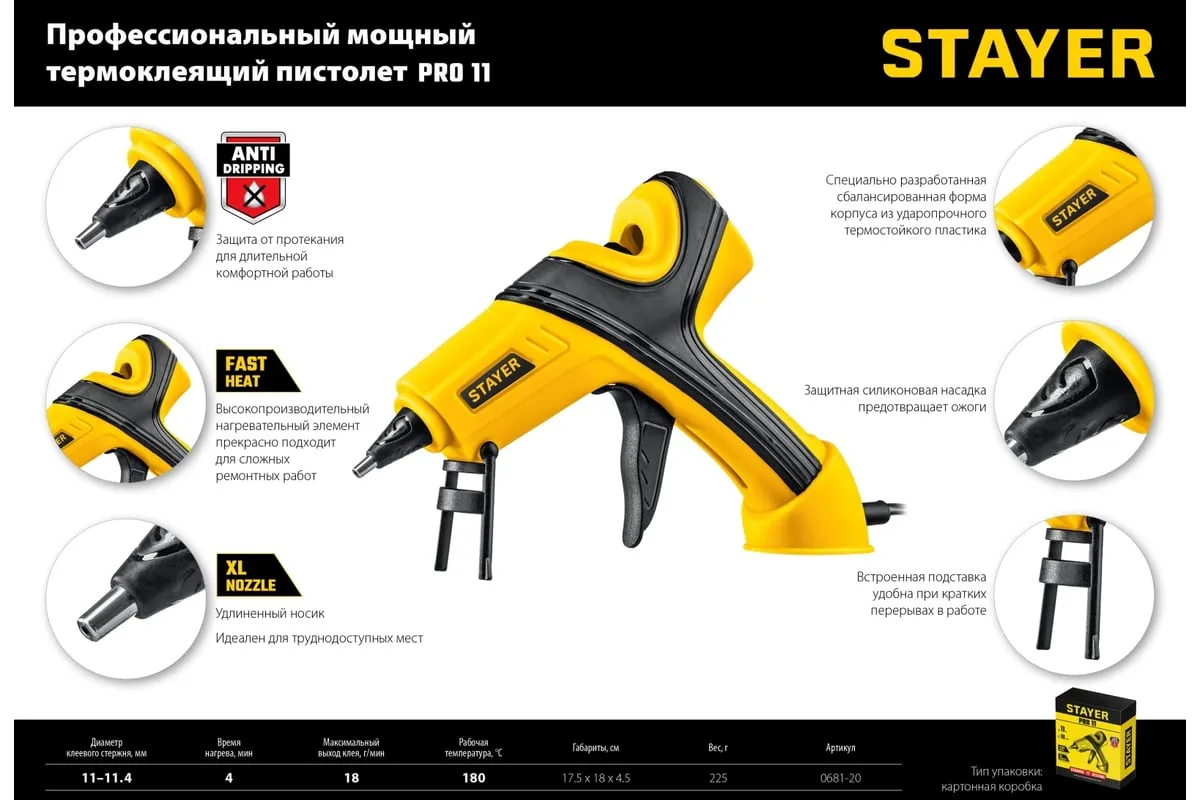 Электрический термоклеевой пистолет STAYER Pro 11 0681-20 - лучший выбор для профессиональных и бытовых работ в флористике, декорировании, изготовлении сувенирной продукции или детском творчестве.