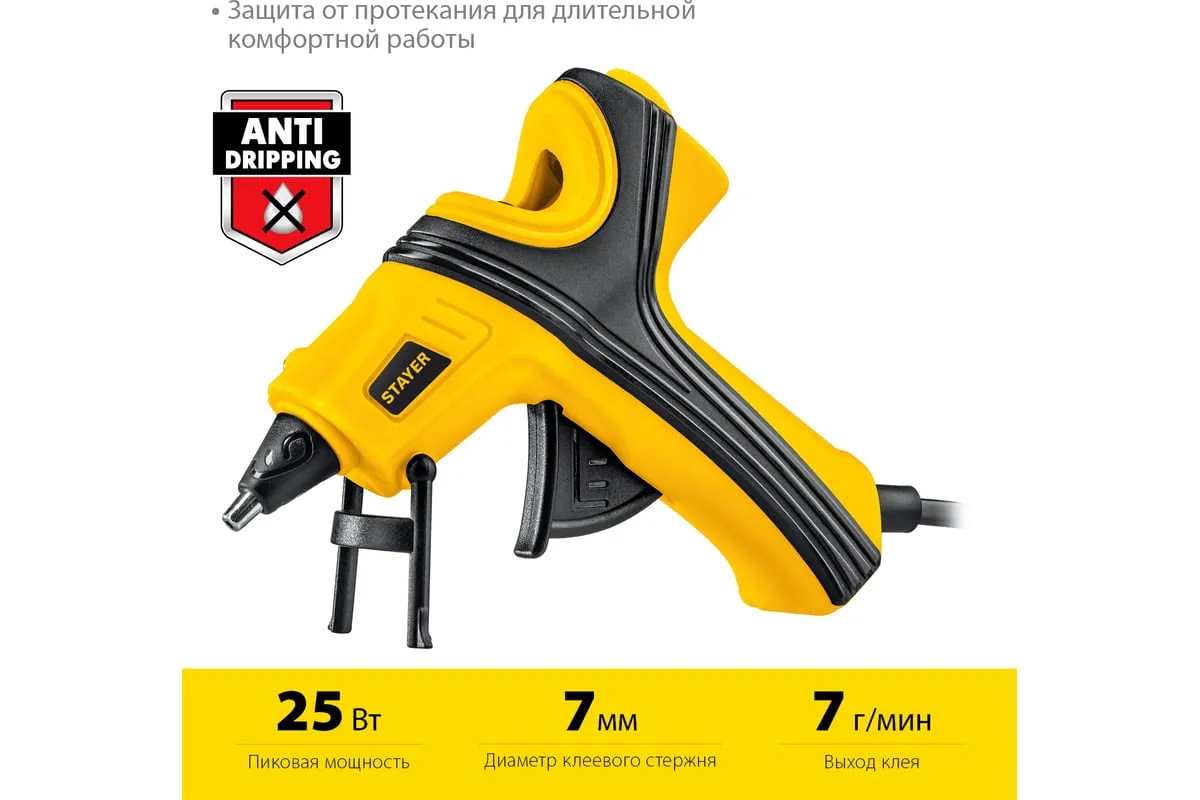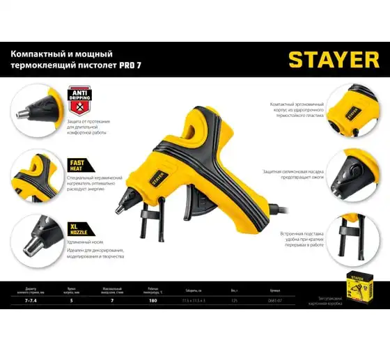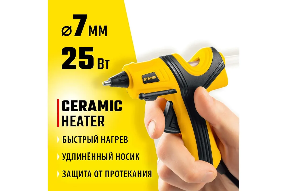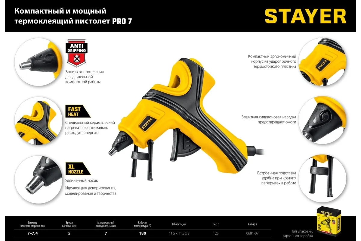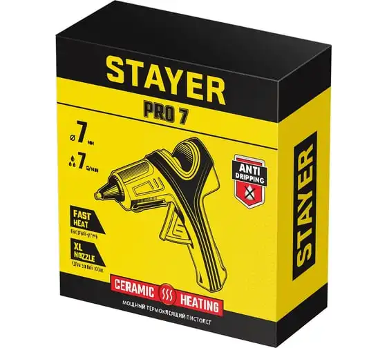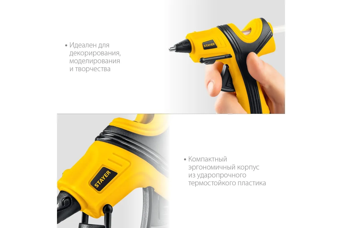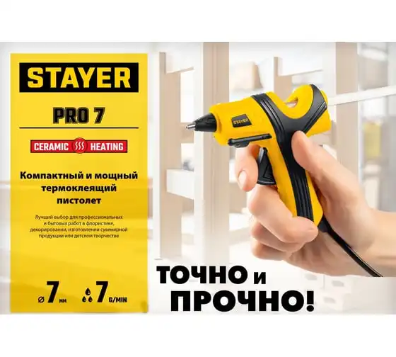 Электрический термоклеевой пистолет STAYER Pro 7 0681-07Электрический термоклеевой пистолет STAYER Pro 7 0681-07флористике, декорировании, изготовлении сувенирной продукции или детском творчестве.
