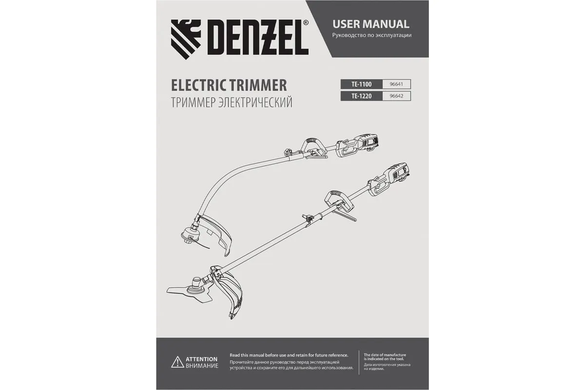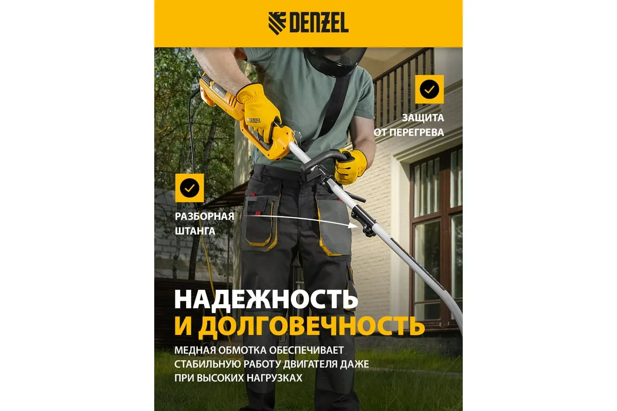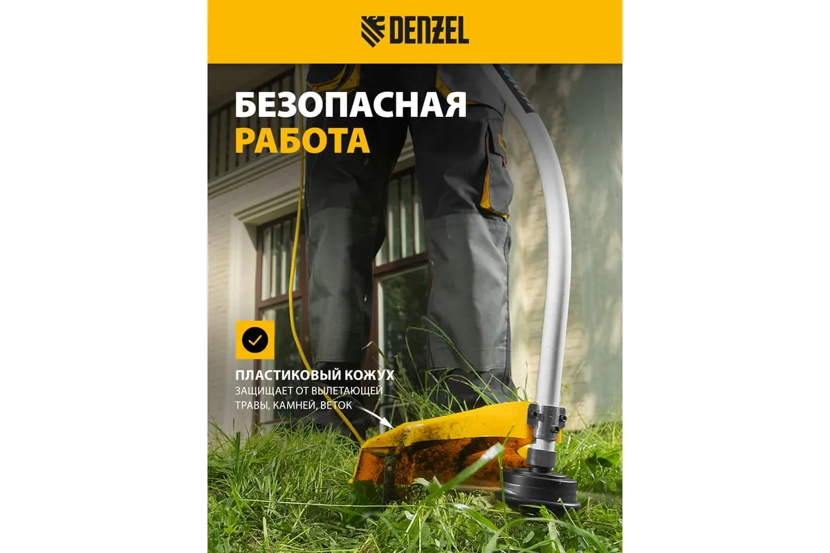 Электрический триммер Denzel TE-1100 96641 предназначен для скашивания травы на дачном участке.