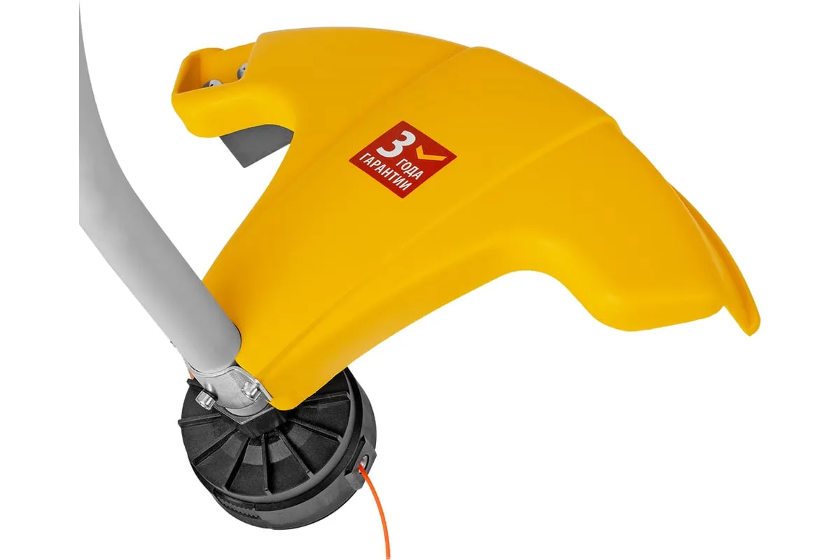 Мощный двигатель на 1100 Вт обеспечивает вращение катушки на триммере со скоростью 6500 об/мин.