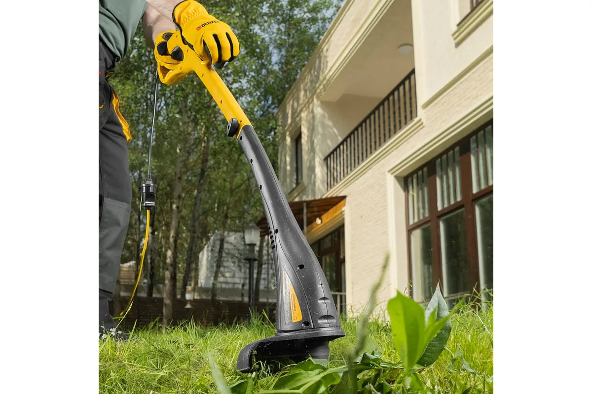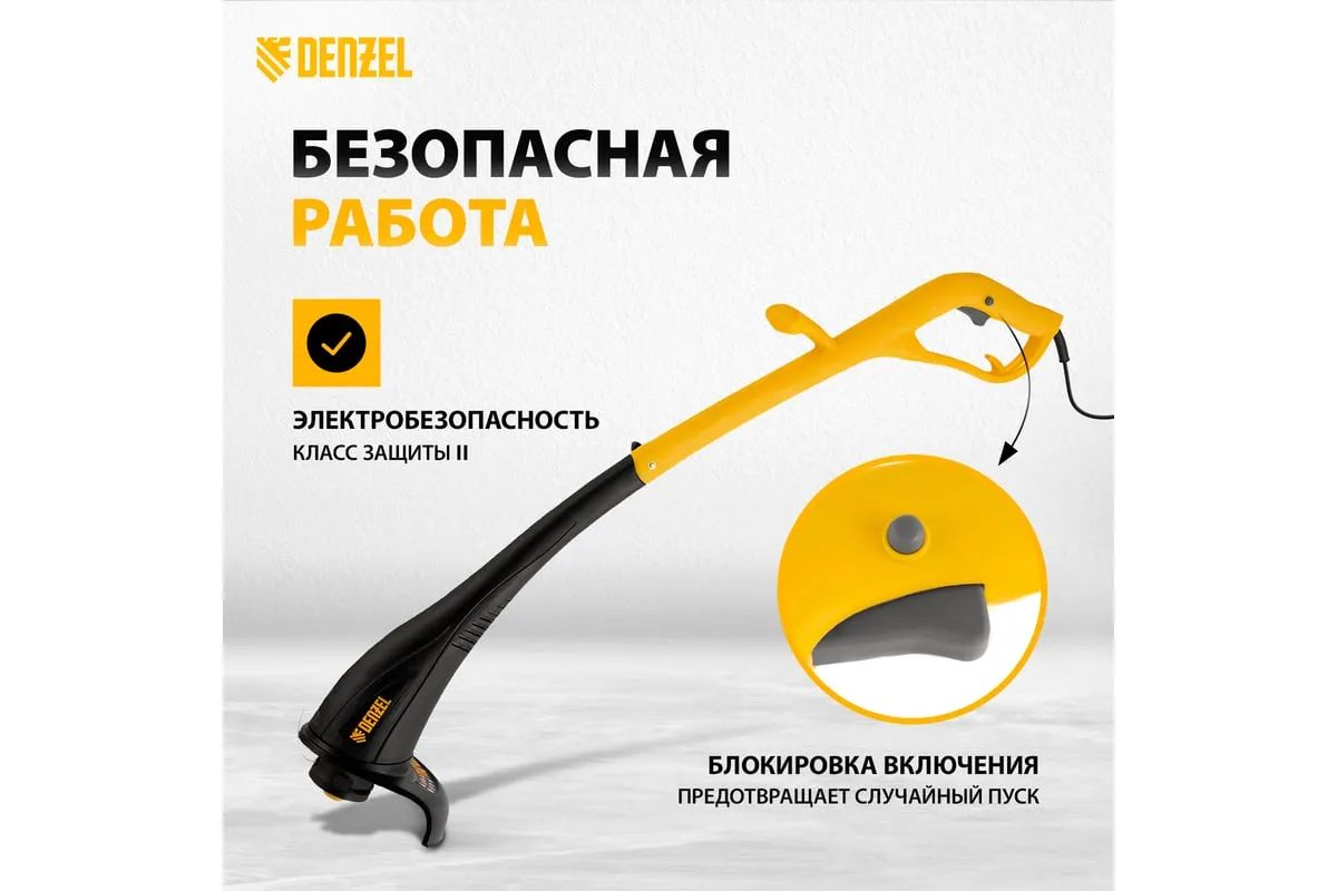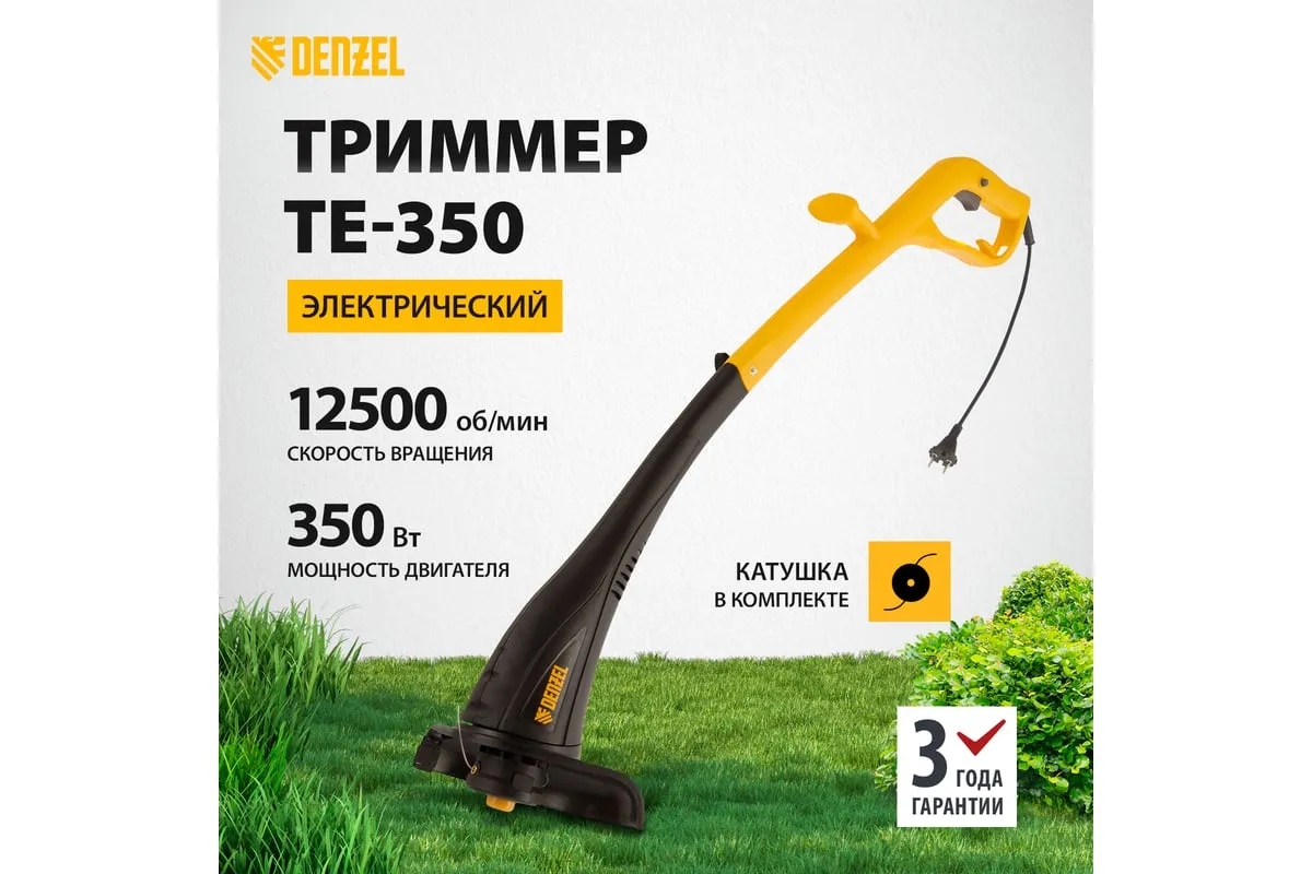Электрический триммер Denzel TE-350 96619 предназначен для выкашивания травы в труднодоступных местах: вокруг деревьев, клумб, вдоль забора и т.д.