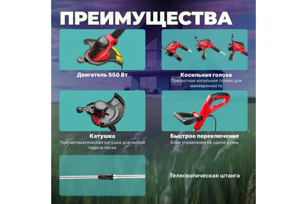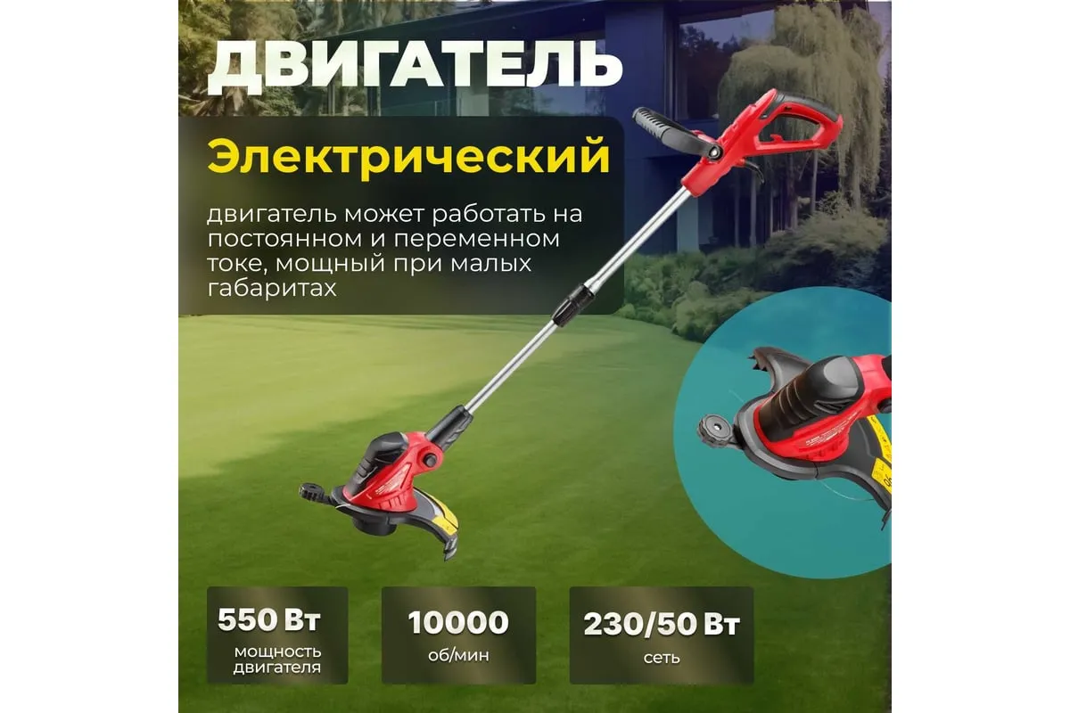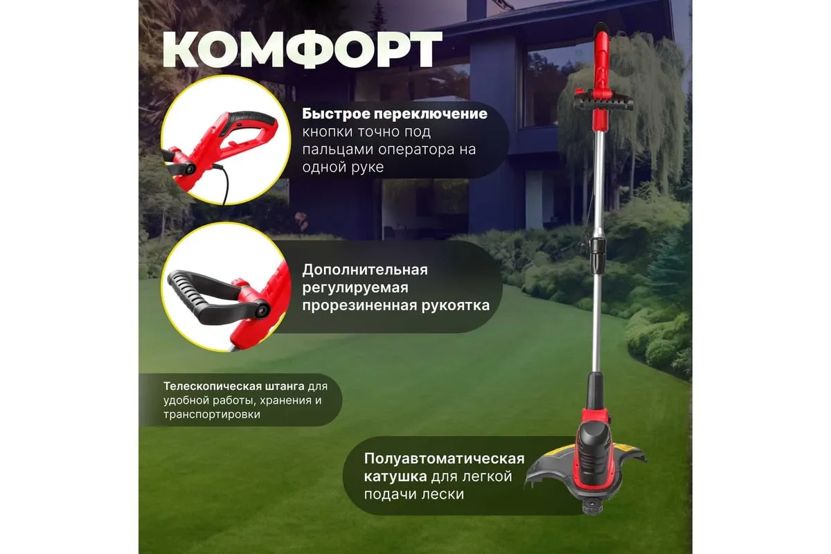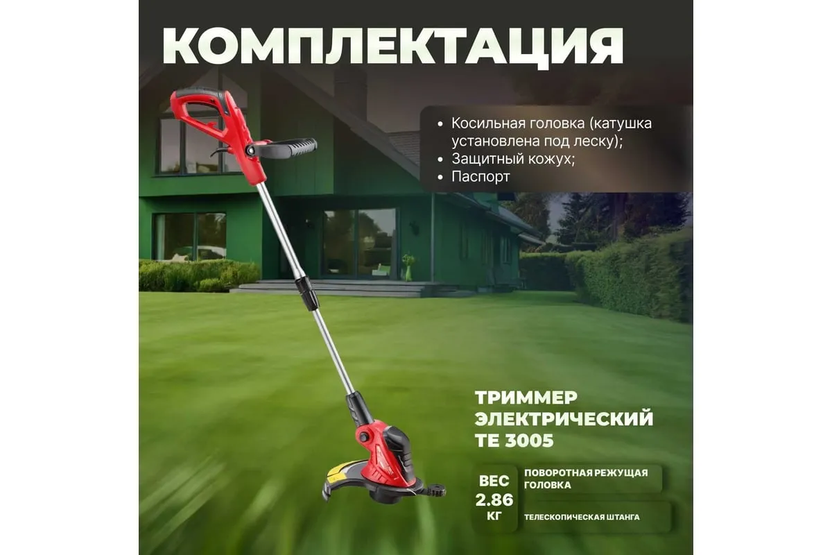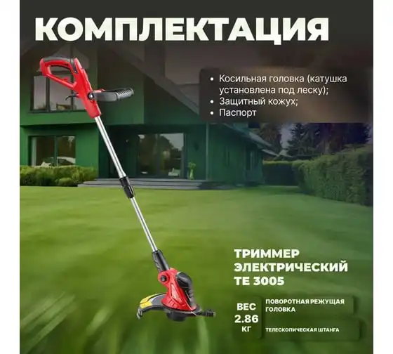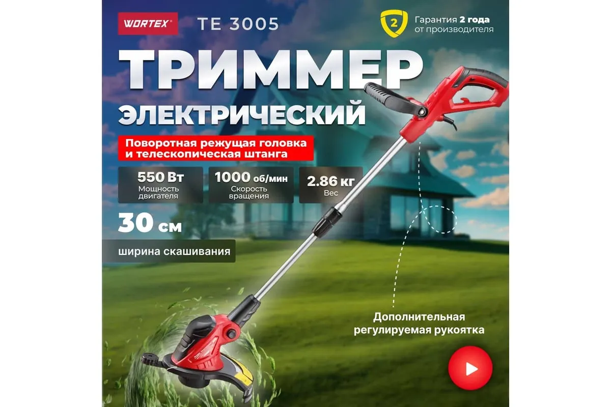 Электрический триммер WORTEX TE300500019 предназначен для использования на приусадебных участках небольшой и средней площади.