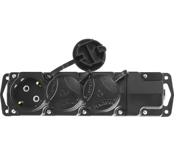 Колодка для удлинителя, 3 гнезда, заземление, защитные крышки, IP44, 3500Вт СИБИН 55114-3