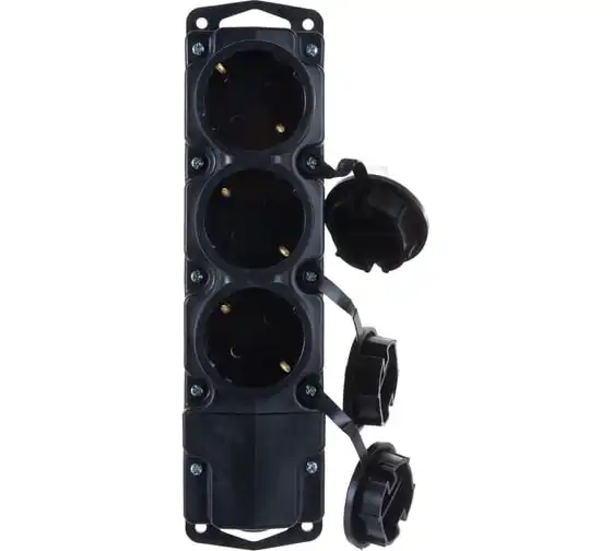 Каучуковая колодка ЭРА K-3e-B-IP44 с заземлением 3гнезда 16A IP44 черная Б0044545